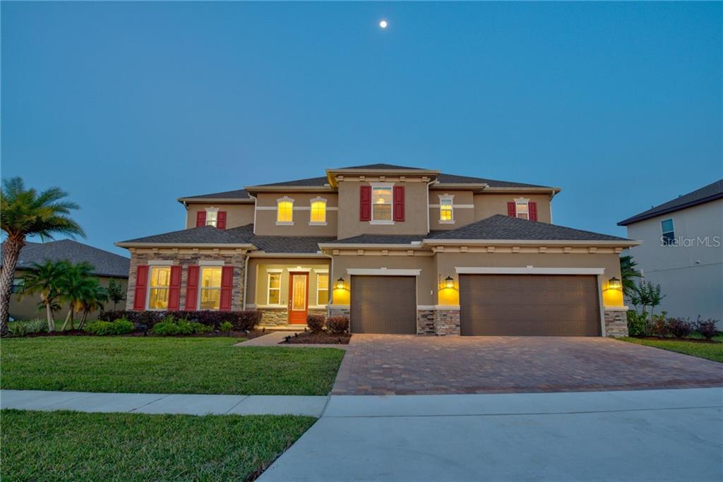 Formal model home! elegance and style define this custom built richmond american home. the owners have spared no expense with a grand 25' high entrance featuring a spiral wood staircase. the kitchen with custom lighting, oversized marble island, oversized pantry and storage, overlooks the breakfast nook and family room perfect for entertaining. this open concept family room opens to the extended covered lanai with 4 folding glass sliding doors to open the indoor space to the outdoor space with a lake/conservation view. downstairs the office opens with french doors onto the lanai. the full sized laundry room is equipped with lots of storage and the oversized air conditioned 3 car garage has easy access to a drop zone. upstairs, the bedrooms have convenient private and semi-private bathrooms. the master bedroom is a full 17x28 extended bedroom and sitting area. the stunning bathroom is marble with a european style shower and enclosed bath. all this located with lake nona amenities and excellent brand new osceola county schools. north pointe is an exceptional gated community with the oversized lots you cannot find anywhere else. ask about the energy efficiency, smart home features, water filtration system, and much more. this stunning home is a rare find!2799 AUTUMN BREEZE, KISSIMMEE, FL 34744