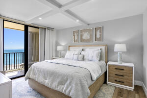 Directly on the beach in jupiter with a stunning 9th floor, due east ocean view. this 2 bedroom / 2 bath condo is completely renovated top to bottom with all new furnishings (2024). if you have high expectations, you will appreciate the $300k+ interior renovation + the brand new decor selected and styled by a local designer. offered seasonally @ $11,500 / month with a 4 month minimum lease, or $7000 / month annually turnkey. extensive building renovations are complete! ocean trail is directly on the beach and offers heated pools, spa, sauna, fitness room, social activities, tennis, gated entry, and secure under building parking.300 OCEAN TRL #908, JUPITER INLET COLONY, FL 33477