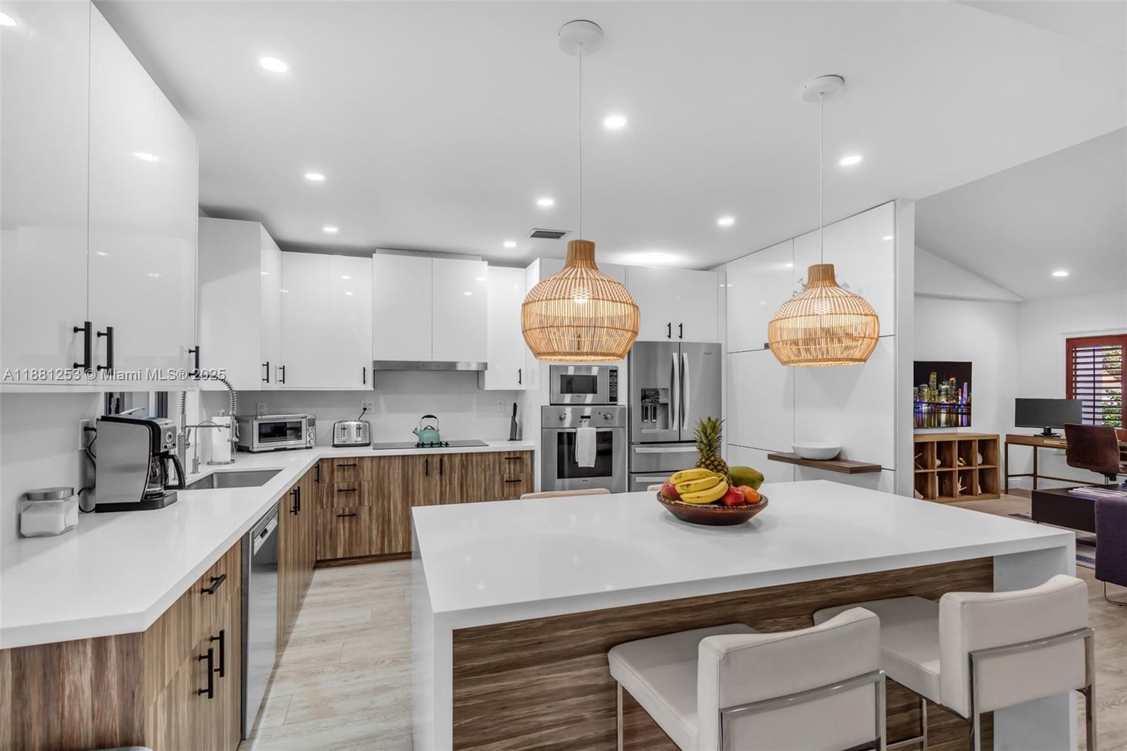 Available furnished for annual rent, this beautifully remodeled one-story key biscayne home offers comfort, style, and privacy. features include brand new impact windows, new flooring inside and out, updated bathrooms, and a chef’s kitchen with viking appliances. high ceilings, formal living and dining rooms, and a spacious family area create a warm, inviting layout. the split floor plan ensures privacy, while the newly redone patio and pool deck - surrounded by lush landscaping and mature fruit trees - offer a true backyard oasis. located on a quiet, tree-lined street just steps from parks, schools, shops, dining, and the community center. includes beach club access340 WOODCREST RD, KEY BISCAYNE, FL 33149