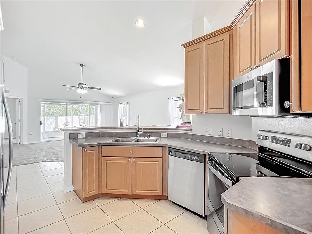 Walk-In Closet(s) Vaulted Ceiling(s)Ceiling Fan(s) Thermostat Solid Surface Counters Primary Bedroom Main Floor Kitchen/Family Room ComboExterior Features: