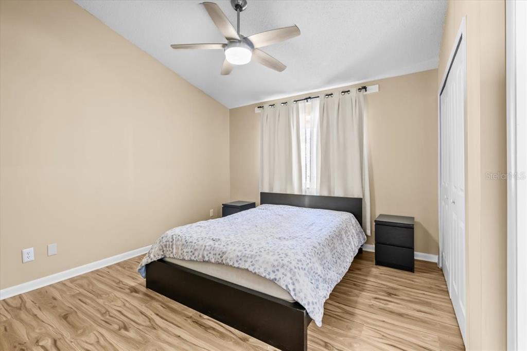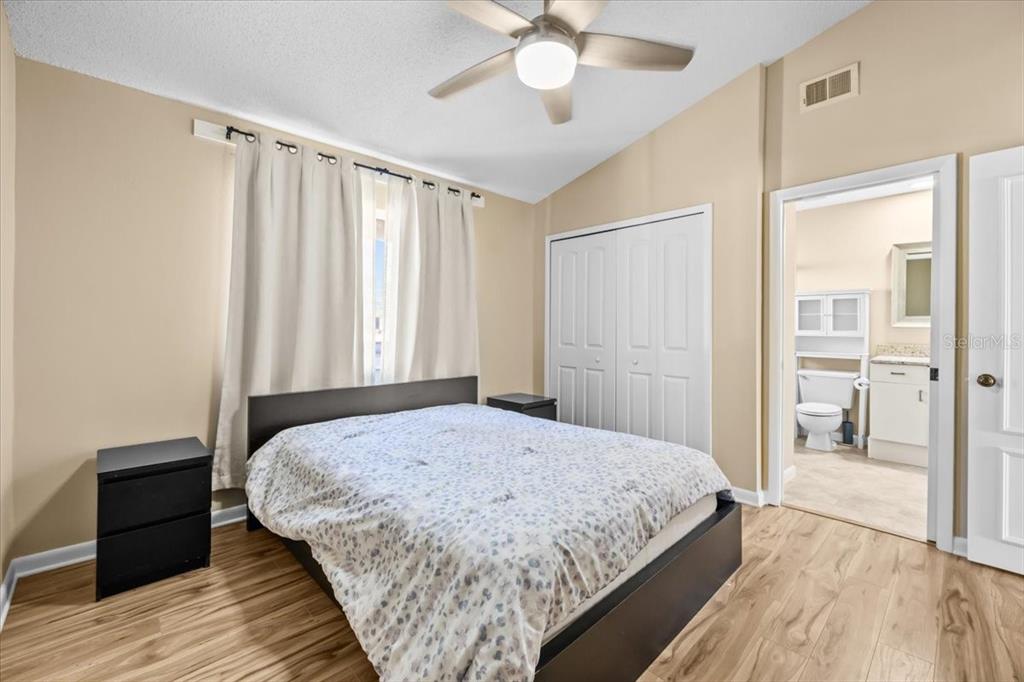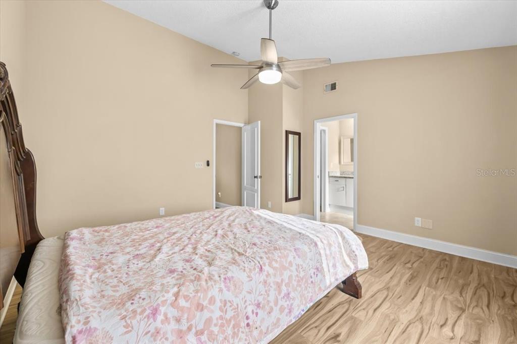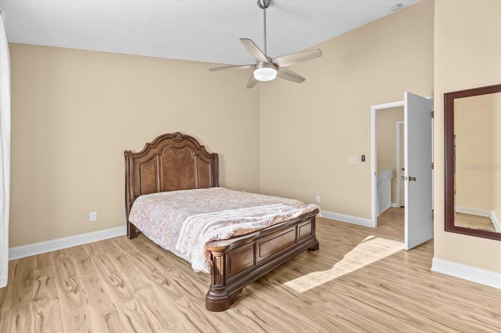 Split Bedroom Walk-In Closet(s) Vaulted Ceiling(s)Ceiling Fan(s) High Ceilings Living Room/Dining Room Combo Thermostat Solid Surface Counters Solid Wood Cabinets Skylight(s) PrimaryBedroom UpstairsCathedral Ceiling(s)Exterior Features: