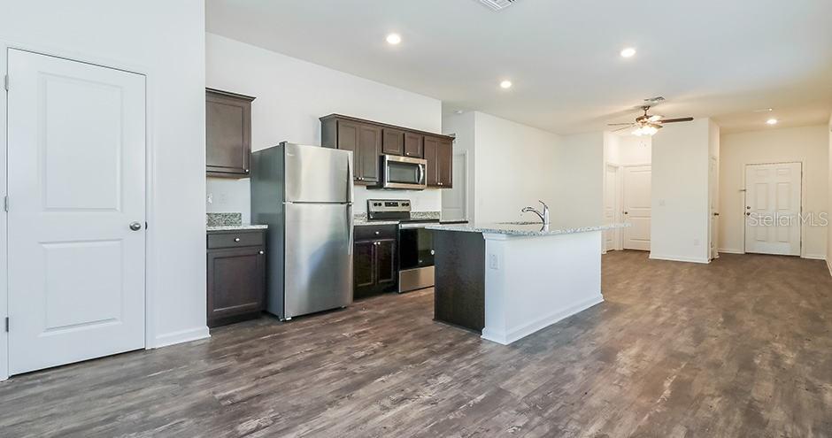 Walk-In Closet(s)Ceiling Fan(s) Eating Space In Kitchen Living Room/Dining Room Combo Stone Counters Thermostat Open Floorplan Solid Surface Counters Kitchen/Family Room Combo L Dining Smart HomeEquipment/Appliances: