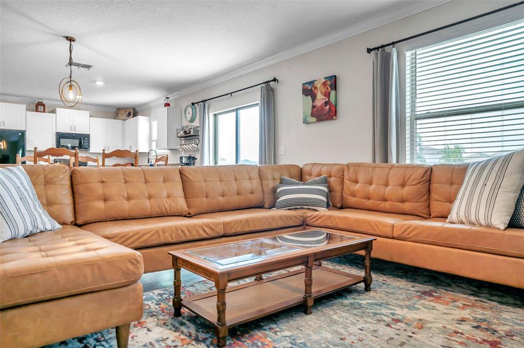 Experience the luxury of this stunning 4-bedroom, 2 ½-bath home in the sought-after copperspring community. as you step inside, you'll immediately notice the elegant luxury vinyl plank flooring and the spacious open-concept design. the main level features a versatile bonus room, a kitchen/great room combination with crown molding, and upgraded baseboards throughout. a convenient half bath is also located on this level. situated on a premium fenced lot with no rear neighbors, this home offers a tranquil setting with lush tropical plants and trees. all bedrooms are located upstairs, along with an additional bonus/flex space, a laundry room, and a main bedroom with an en suite bath. the neutral color palette throughout the home makes decorating a breeze. this home is ideally located near the community pool, which includes outdoor grills, restrooms, a covered picnic area, a playground, a park, and scenic walking paths and trails. residents of copperspring also have easy access to the anclote river, perfect for kayaking or canoeing. this fully furnished home is ideal for your travels. just step off the plane, and you'll find everything you need for a comfortable stay. relax by the beautiful pool and enjoy the outdoor entertainment area. with flexible lease to allow for easy mid term stays3737 COPPERSPRING, NEW PORT RICHEY, FL 34653