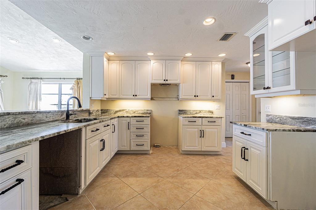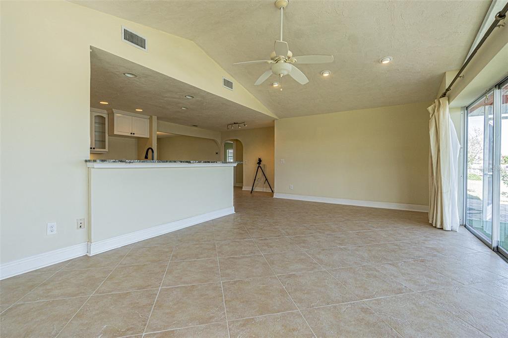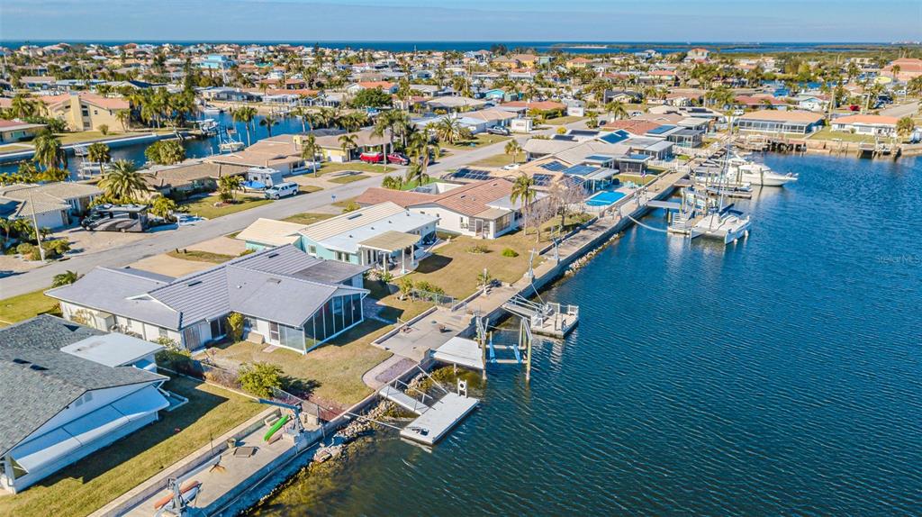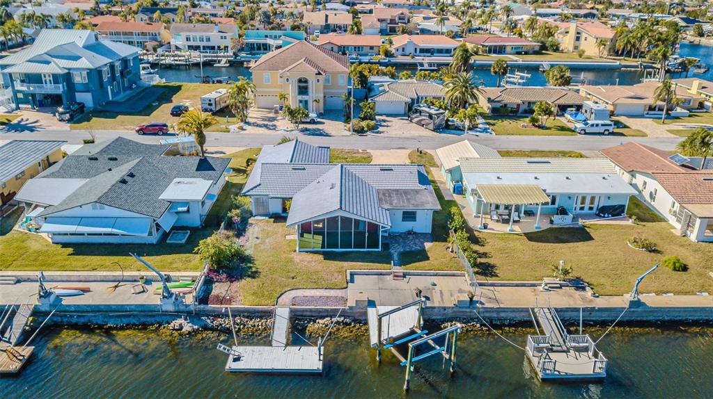 A boating enthusiast’s dream located on one of the widest and deep-water canals in gulf harbors! this renovated waterfront residence overlooks a protected wide and deep-water canal that provides open access to the gulf of america . situated in the sought-after floramar subdivision within the gulf harbors community, this 1,912 sq ft, block-constructed home. 3-bedroom split floor plan plus a den, 2 baths, and a 2-car garage. the seller’s pride of ownership and attention to detail are evident from the moment you arrive. from the landscaping to the oversized dock and boat lift, and screened patio for peaceful sunrises and sunset cookouts and entertaining. step through the front entryway and the open floor plan and are welcomed to the wide saltwater canal! the expansive light & airy open living concept, the heart of the home—the kitchen—features recessed lighting, an oversized counter-height bar island with ample cabinet storage, granite countertops, wood cabinets. the spacious living room includes a dining area that offers extensive natural light from the wall, sliding glass doors, and a second seating area. on a cool autumn evening, the excellent cross ventilation of the gulf breeze via the screen enclosed front door and open sliders brings the living area and pool deck together as one space. the split floor plan’s primary bedroom plus a den boasts multiple windows, large closets, and an ensuite bath with a glass-enclosed shower and dual sink vanity. the second and third bedrooms also has built-in closets, and plenty of natural light. in addition, gulf harbors is a golf cart friendly community that includes the opportunity to obtain a membership to their beautiful private beach. with all this home has the boater’s dream of a backyard5056 GALLEON, NEW PORT RICHEY, FL 34652