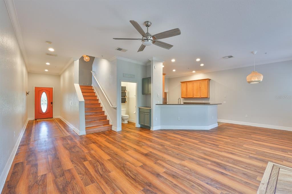 Walk-In Closet(s)Ceiling Fan(s) Thermostat Open Floorplan Solid Surface CountersCrown MoldingExterior Features: