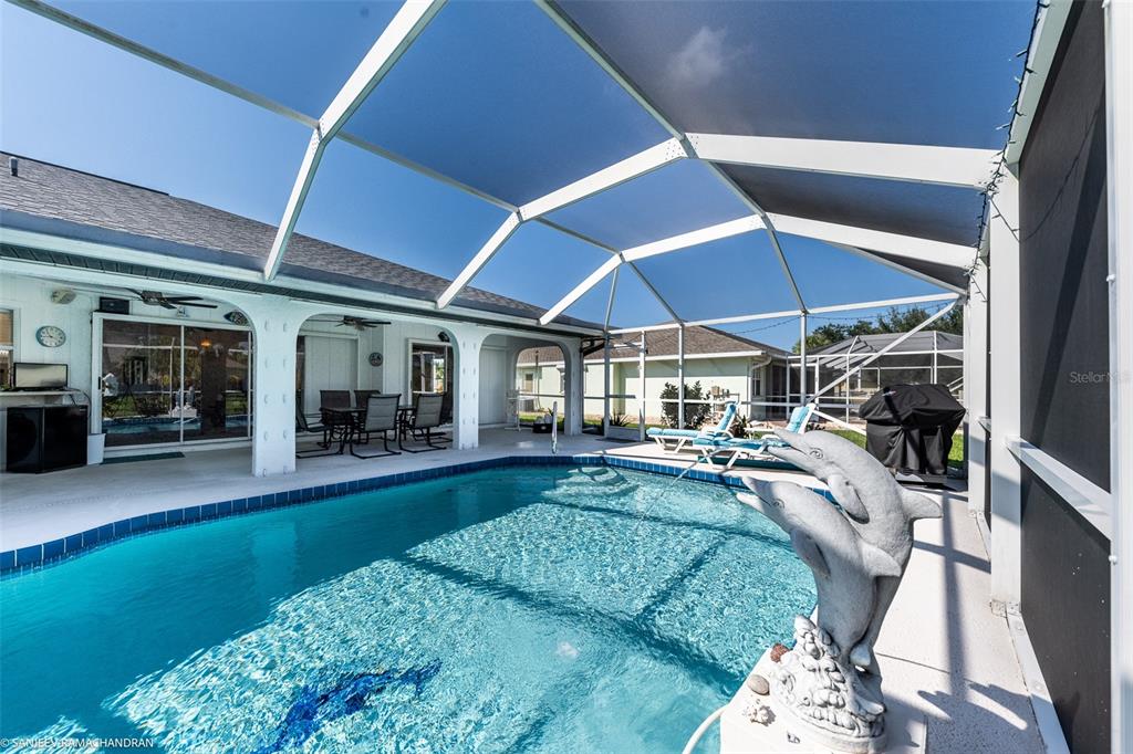 Seasonal / short-term rental- available now. escape to the tranquility of southwest florida with this turnkey ranch-style retreat, nestled just minutes from the heart of downtown punta gorda. the home greets you with timeless curb appeal, drawing you in to discover a sanctuary of comfort and style. inside, an updated gourmet kitchen awaits, where wood cabinets and sleek solid surface countertops shine beneath warm lighting. imagine mornings in the bright eat-in kitchen, where porcelain tiles stretch across the open floor plan, guiding you to a spacious living area perfect for relaxation or entertaining. retreat to the master suite, a haven of luxury with generous walk-in closets and an opulent bath featuring his and her vanities, a walk-in shower, and serene ambiance. the home offers two more guest bedrooms, both with plush queen-size beds and a shared, fully updated guest bath. outside, step into your own private paradise: a large covered lanai encircling a sparkling solar-heated pool, perfect for year-round enjoyment. whether you're relaxing poolside or taking a short drive to nearby golf courses, parks, and shopping, this seasonal rental invites you to indulge in the best that florida living has.538 W CASHEW, PUNTA GORDA, FL 33955