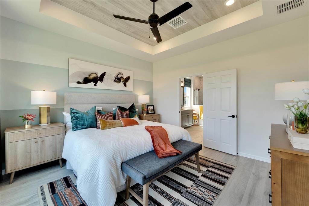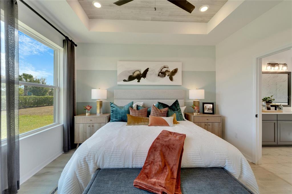 Walk-In Closet(s)Ceiling Fan(s) Stone Counters Thermostat Open Floorplan Window Treatments Tray Ceiling(s)Equipment/Appliances: