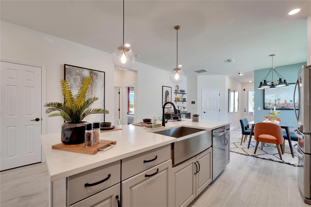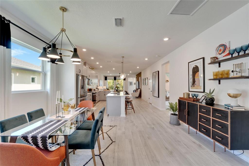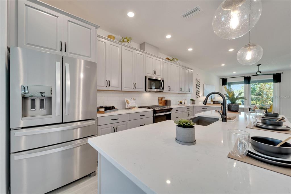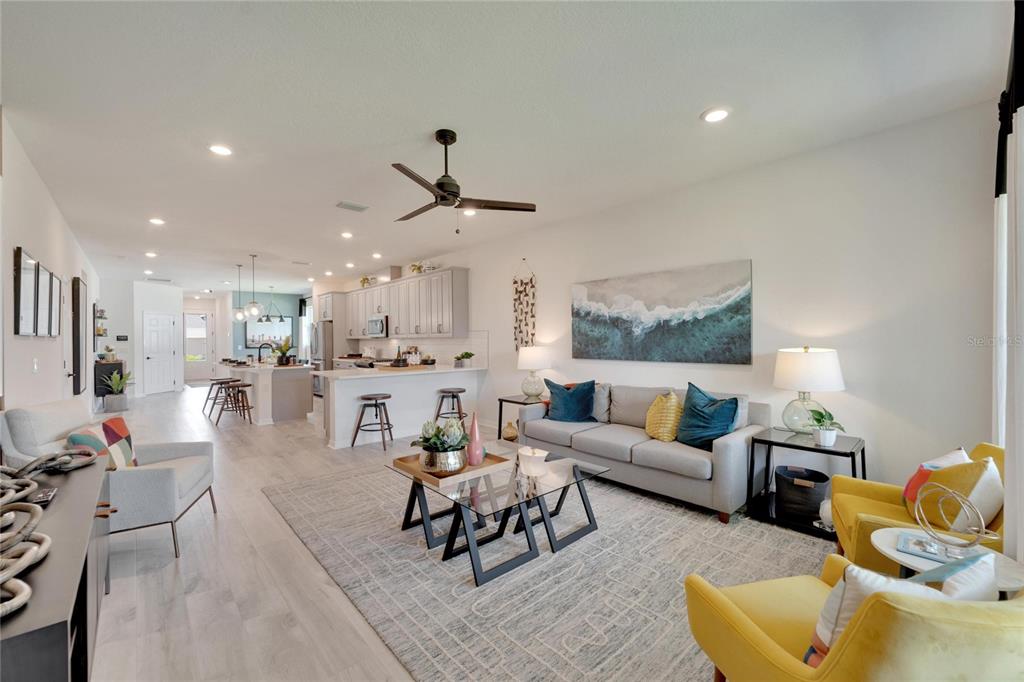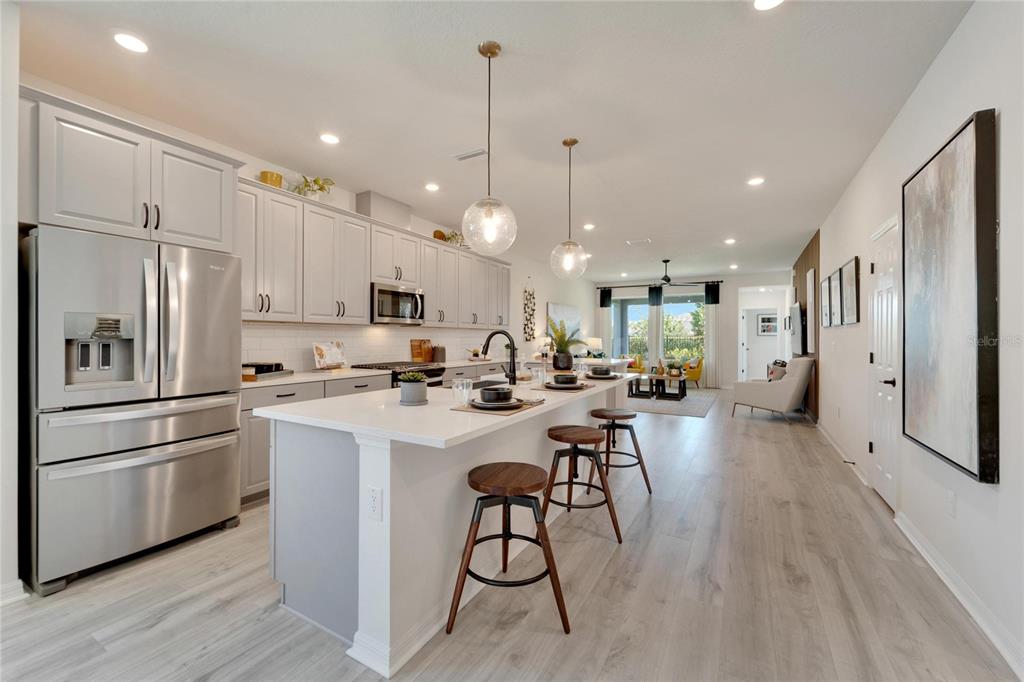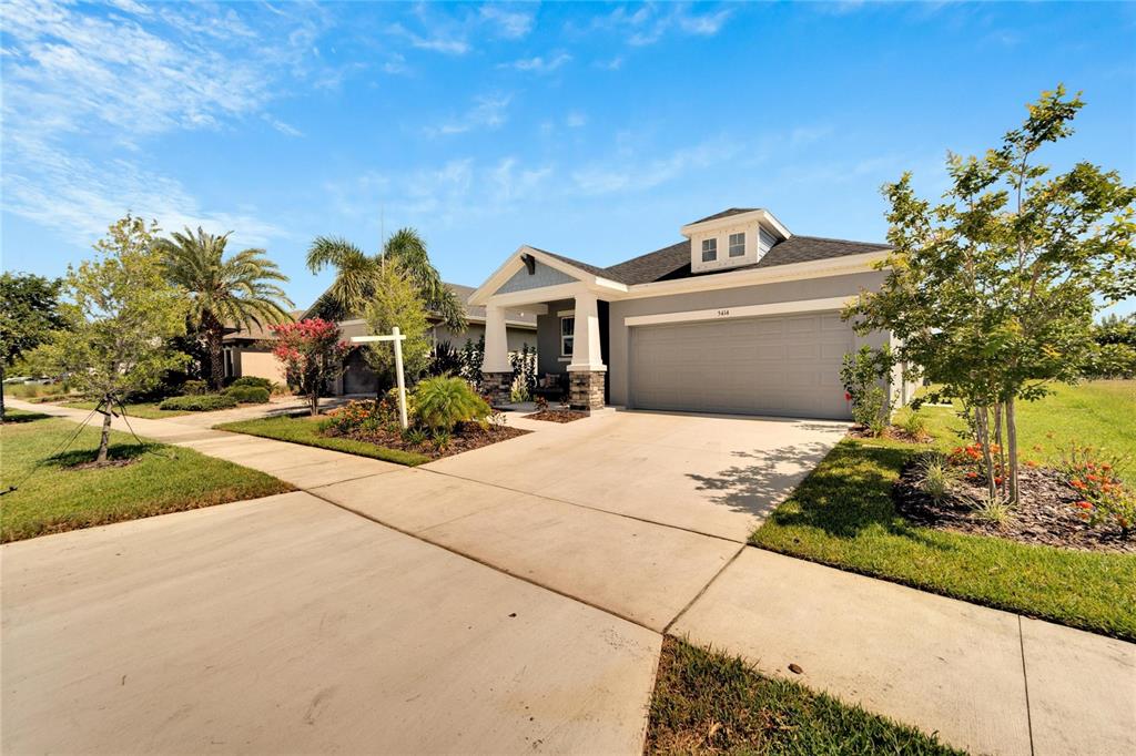 Welcome to your new home in the vibrant community of waterset - 5414 silver sun drive! this brand new 3-bedroom former david weekly model home is move-in ready and filled with elegant high end finishes and decorative touches throughout. with many homes affected by the devastation of hurricane helene, unlike many neighborhoods that faced flooding, the waterset community is built at elevated heights, and all homes have remained high and dry. with its strategic design and flood-resilient location, waterset continues to provide peace of mind and protection, making it a standout choice for homeowners. the cozy front porch sets a welcoming tone as you step inside. the open layout with over $100k in design features seamlessly connects the eating area, kitchen, and great room, making it perfect for both entertaining and everyday living. the sunny eating area is ideal for creating a formal dining space, while the kitchen boasts a delightful setup with stone countertops, plenty of tall cabinetry and storage, great pantry, expansive countertops with seating, a farm sink, stainless steel appliances, a gas stove, and an island perfect for casual bar stool seating. the living area is filled with natural light, featuring a custom accent wall and sliding glass doors leading to the covered lanai. the lovely primary suite includes a beautiful tray ceiling, dual sinks, a walk-in shower, and a walk-in closet. don’t miss the chance to make this exquisite waterset home yours today! the waterset community in apollo beach offers an exceptional living experience with an array of amenities designed for an active and social lifestyle. this home is literally moments away from the waterset clubhouse. which features a resort-style pool, a lap pool, a state-of-the-art fitness center, basketball courts, pickleball courts, and a sand volleyball court. residents can enjoy the game room and a reservable gathering room for events. the waterline station provides an additional community pool for relaxation and recreation. the community also boasts multiple parks and playgrounds, over 12 miles of greenway trails, a fit trail, and beautiful lakes and greenspaces throughout, making waterset an ideal place for those seeking a vibrant and well-rounded community.5414 SILVER SUN, APOLLO BEACH, FL 33572
