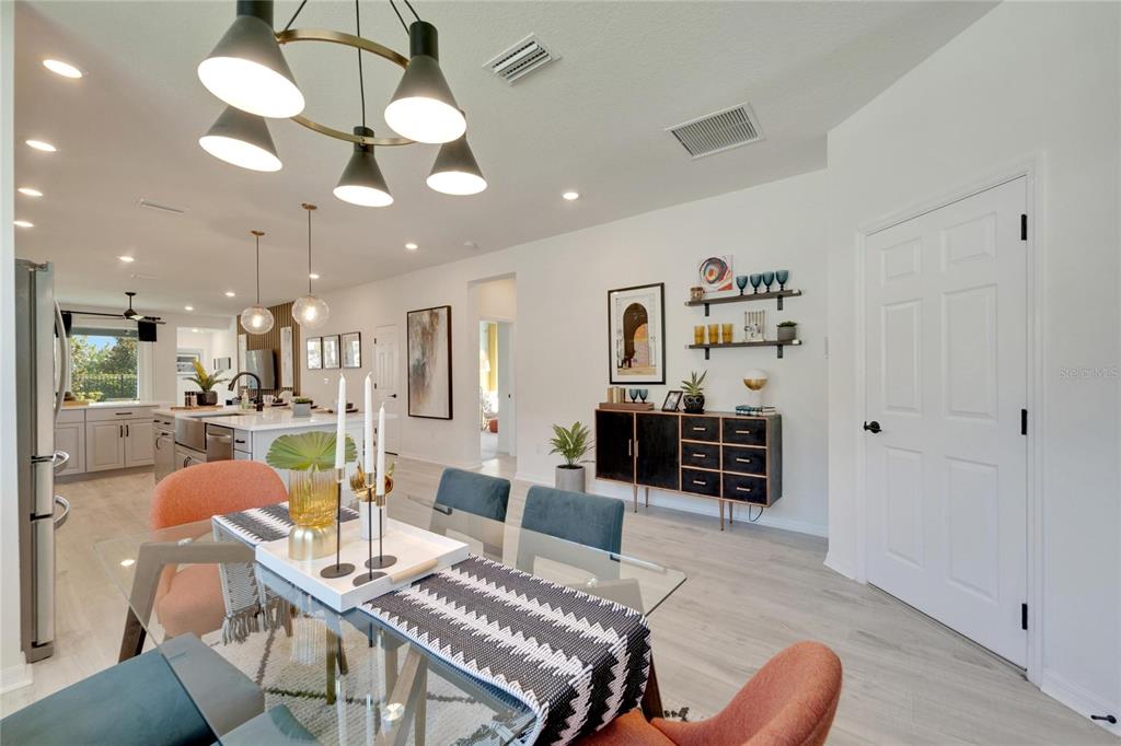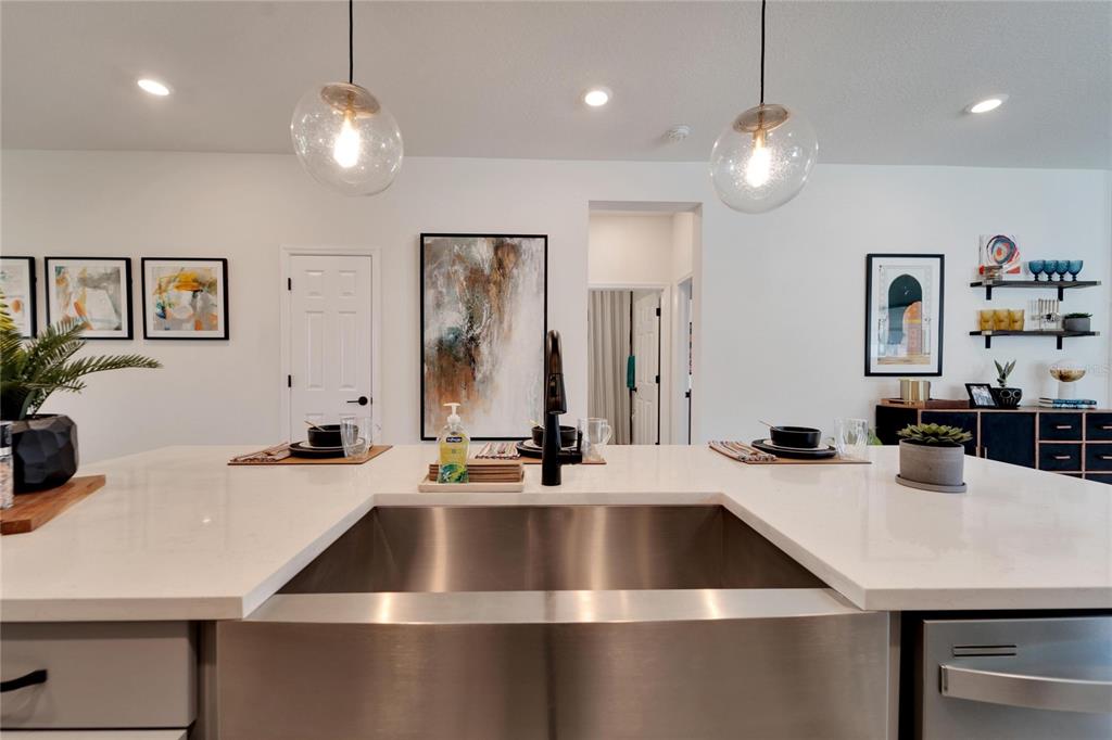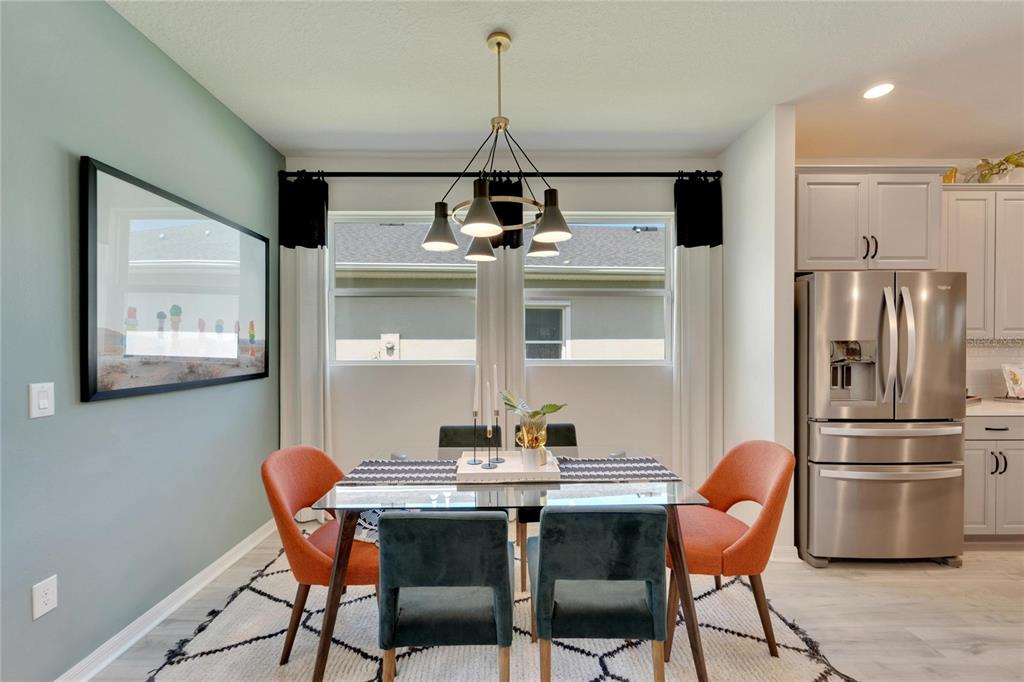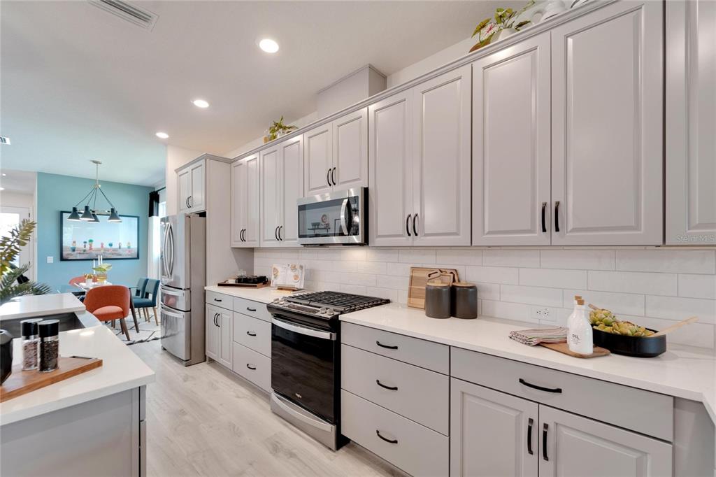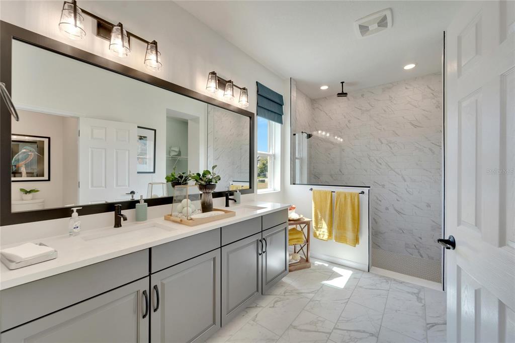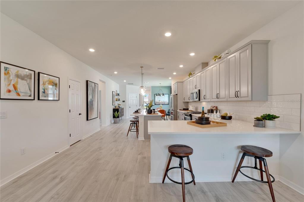 Welcome to your new home in the vibrant community of waterset - 5414 silver sun drive! this brand new 3-bedroom former david weekly model home is move-in ready and filled with elegant high end finishes and decorative touches throughout. with many homes affected by the devastation of hurricane helene, unlike many neighborhoods that faced flooding, the waterset community is built at elevated heights, and all homes have remained high and dry. with its strategic design and flood-resilient location, waterset continues to provide peace of mind and protection, making it a standout choice for homeowners. the cozy front porch sets a welcoming tone as you step inside. the open layout with over $100k in design features seamlessly connects the eating area, kitchen, and great room, making it perfect for both entertaining and everyday living. the sunny eating area is ideal for creating a formal dining space, while the kitchen boasts a delightful setup with stone countertops, plenty of tall cabinetry and storage, great pantry, expansive countertops with seating, a farm sink, stainless steel appliances, a gas stove, and an island perfect for casual bar stool seating. the living area is filled with natural light, featuring a custom accent wall and sliding glass doors leading to the covered lanai. the lovely primary suite includes a beautiful tray ceiling, dual sinks, a walk-in shower, and a walk-in closet. don’t miss the chance to make this exquisite waterset home yours today! the waterset community in apollo beach offers an exceptional living experience with an array of amenities designed for an active and social lifestyle. this home is literally moments away from the waterset clubhouse. which features a resort-style pool, a lap pool, a state-of-the-art fitness center, basketball courts, pickleball courts, and a sand volleyball court. residents can enjoy the game room and a reservable gathering room for events. the waterline station provides an additional community pool for relaxation and recreation. the community also boasts multiple parks and playgrounds, over 12 miles of greenway trails, a fit trail, and beautiful lakes and greenspaces throughout, making waterset an ideal place for those seeking a vibrant and well-rounded community.5414 SILVER SUN, APOLLO BEACH, FL 33572