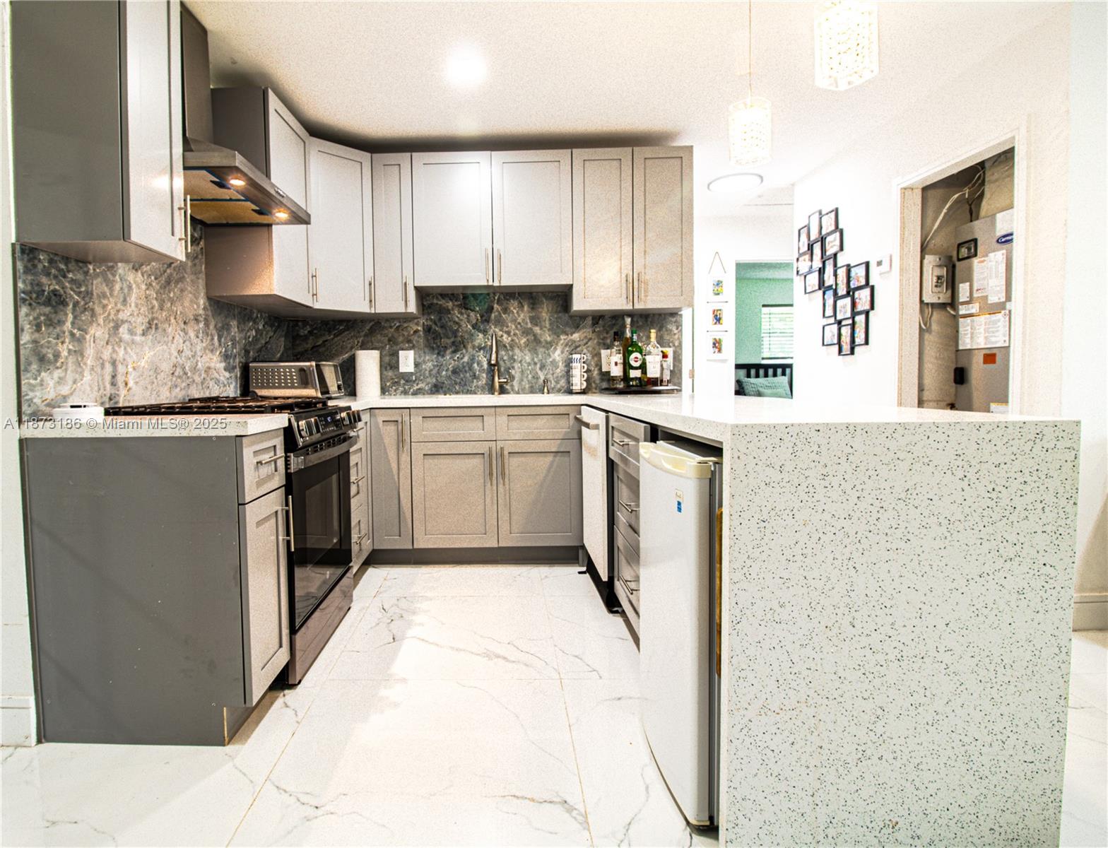 This beautifully remodeled house in davie home also includes a private maid/in-law quarters—perfect for guests, home office, or rental income. fully updated with a 1-year-old roof, impact windows, brand-new a/c, gas water heater, and new stainless-steel appliances including a gas range. modern chef’s kitchen with quartz waterfall island, sleek porcelain floors, and open living spaces. fenced backyard patio ideal for entertaining.5601 SW 38TH ST, DAVIE, FL 33314