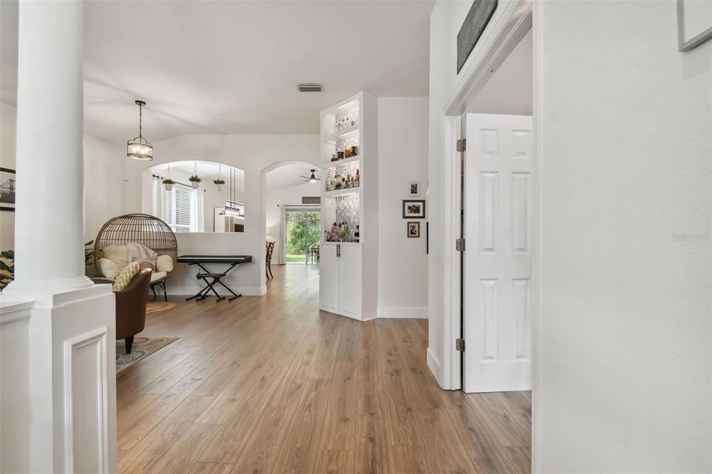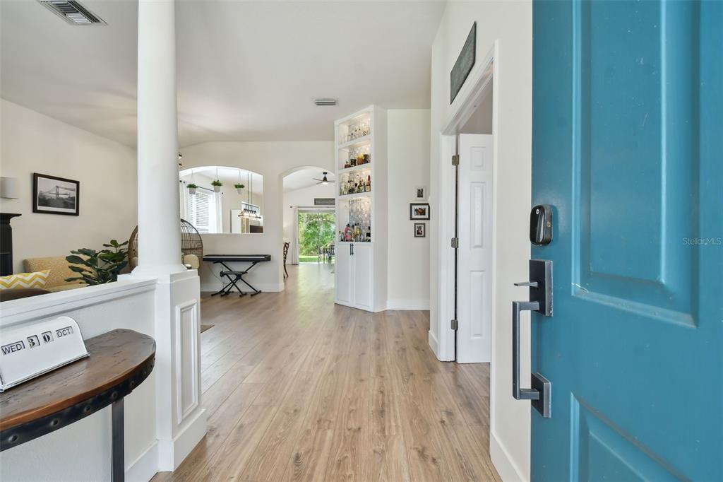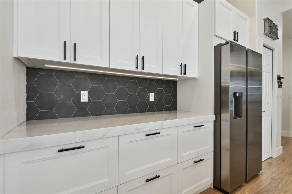 Come see this 3 bedroom/2 bath gem that screams of casual elegance. the gourmet kitchen is a chef’s paradise, equipped with porcelain countertops, elegant white glacier 42” cabinets with soft-close drawers and doors with a thoughtfully designed layout with a generous island for culinary creations. this seamless connection between the kitchen and dining area makes it perfect for entertaining guests or enjoying family time. durable and visually appealing luxury vinyl flooring extends throughout the home. the primary bedroom epitomizes luxury living, boasting a private sanctuary with its spa-like ensuite bathroom featuring soaking tub, walk-in shower and dual vanities. the backyard oasis features full foliage and privacy and a firepit to enjoy those fall evenings. newer ac and newer roof (2020/2018) this home is truly move-in ready. office can be a fourth bedroom and has a murphy bed...!5723 BENT GRASS, VALRICO, FL 33596
