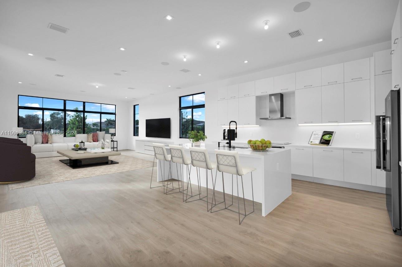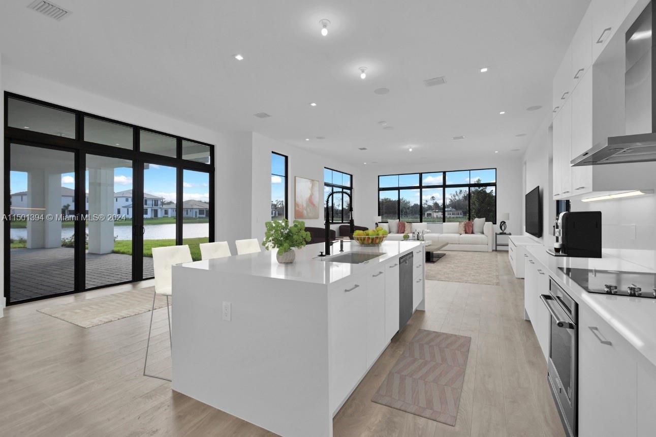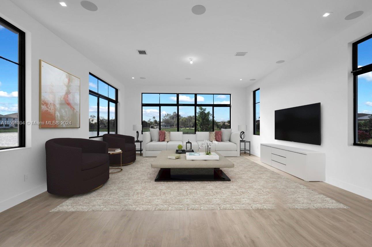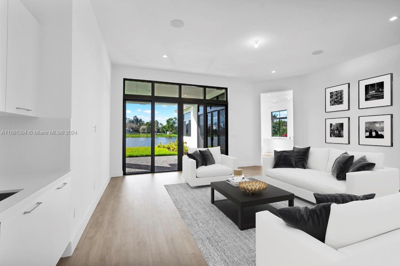 Discover the epitome of elegance and modern living in this 6-bedroom, 5-bathroom waterfront home situated on a cul-de-sac. this home offers a host of upscale features including a serene waterfront lot with picturesque views. inside, enjoy an impressive interior with 11' ceilings, european-style cabinetry and quartz counter tops, adding an air of sophistication. the in-law suite with a private entrance provides independent living space, while 8 security cameras and 35 speakers throughout the home ensure peace of mind and an immersive audio experience.the gated community entrance exudes elegance and prestige. total sqft: 7,122.5735 SW 104TH TER, COOPER CITY, FL 33328