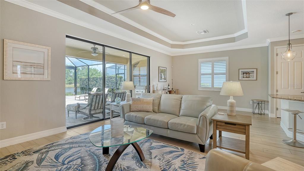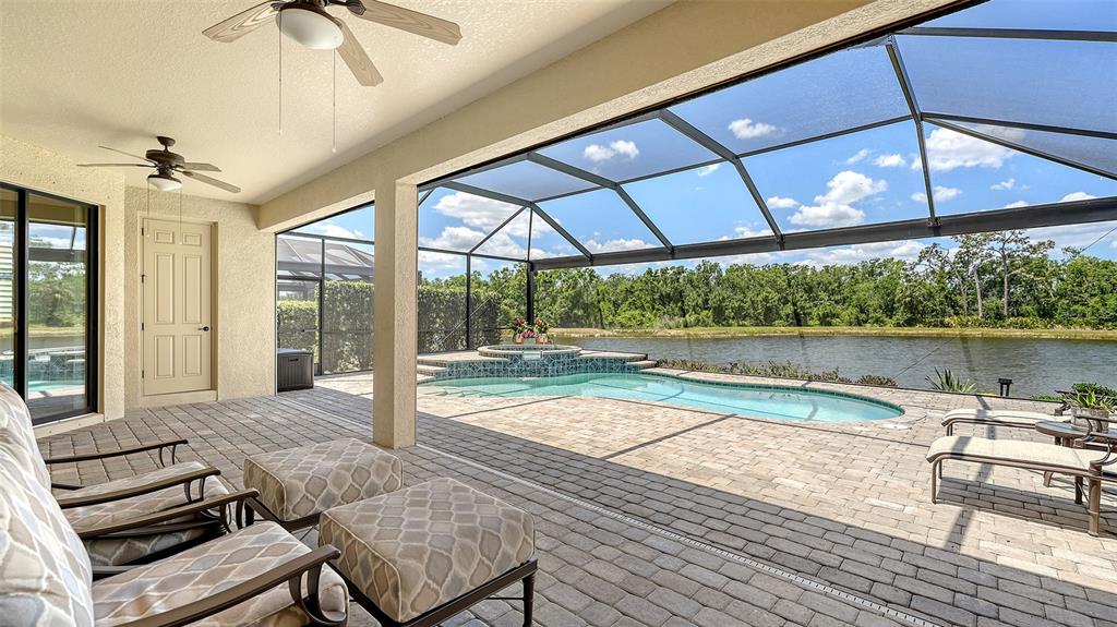 Beautiful two bedroom, two and a half bath (plus a den) single family home offers peace and tranquility with stunning views of the lake. enjoy hassle free, simple elegance in this beautiful, organic themed single family home located in the much sought after gated community of lakewood national golf club, which boasts 2 champion golf courses and hosts the prestigious lecom annual pga suncoast classic among other events. this beautiful home offers a stunning open floor plan, with unrivaled water views upon entering courtesy of your tropical pool/spa’s invisible picture screen. the spacious master suite is cleverly located at the back of the home to maximize the beautiful picturesque water views directly from bed and features double walk-in closets and ensuite bathroom, with welcoming soaking tub, double sinks and walk/in shower .the pool/spa area features an outdoor grill, tv and the latest technically advanced quiet heating system, as well as an outdoor half-bath. elegant new custom lighting, central air system and other upgrades are featured throughout. be our guest and enjoy the simple pleasures of florida resort style living without the stress and worry in your own private oasis. furniture can be removed as this home is offered unfurnished as well. all clubhouse amenities transferable, comes with an electronic vehicle gate pass. golf cart can be rented for an additional fee, & pool maintenance, lawn care and organic pest control included.5914 CESSNA, LAKEWOOD RANCH, FL 34211