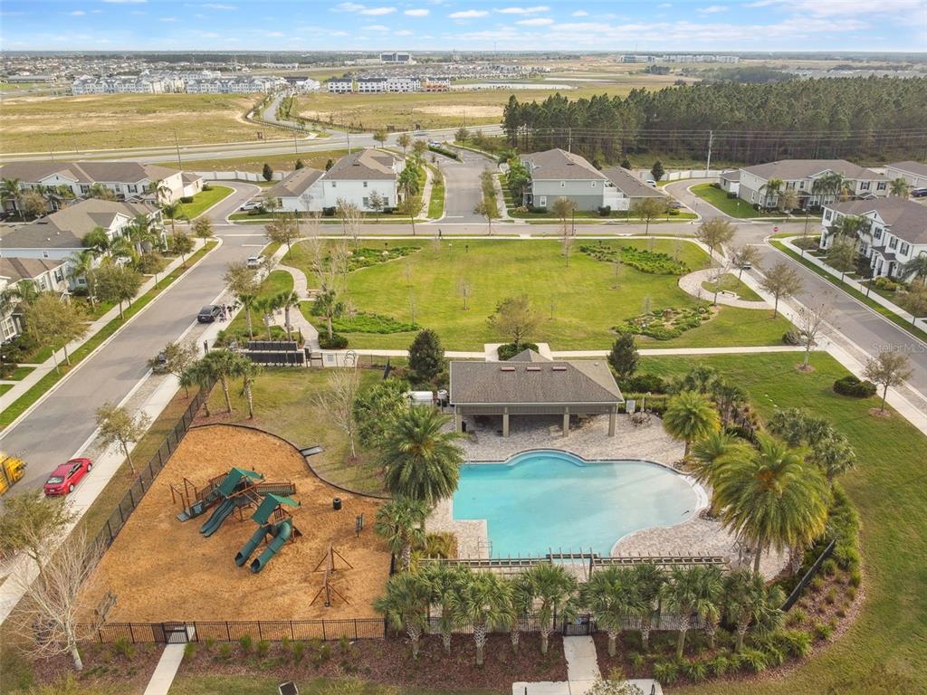 Welcome to the newer and well-maintained community of hamilton gardens where you'll find this 3-bedroom, 2.5 bath townhome within one mile of hamlin town center offering dining, shopping, entertainment, and medical care. with over 1714sf, this end unit is one of the largest in the neighborhood and features a private, fully-fenced courtyard, rear entry 2 car garage with a paver driveway, and no rear neighbors! as you enter the living room, you'll fall in love with the spacious open floor plan accentuated by an abundance of natural light. you're drawn to the kitchen where the oversized island provides ample seating and is a natural gathering place for family and friends. granite countertops, stainless steel appliances, and an induction range. this, along with the dining area, overlooks a private courtyard with vinyl fencing and paver patio where you can enjoy the perfect outdoor living space. all bedrooms and two baths are upstairs along with a laundry room. the owners suite has a walk-in closet. the ensuite bathroom has a double sink vanity with a walk-in shower. amenities include a resort-style pool with beach entry and cabana, dog park, sports lawn, playgrounds, and nature gardens. fireworks can be seen nightly from this community. the combination of florida outdoor living, walkability, and community-oriented development, makes this townhome the place to call home!6256 ARALIA IVY, WINTER GARDEN, FL 34787