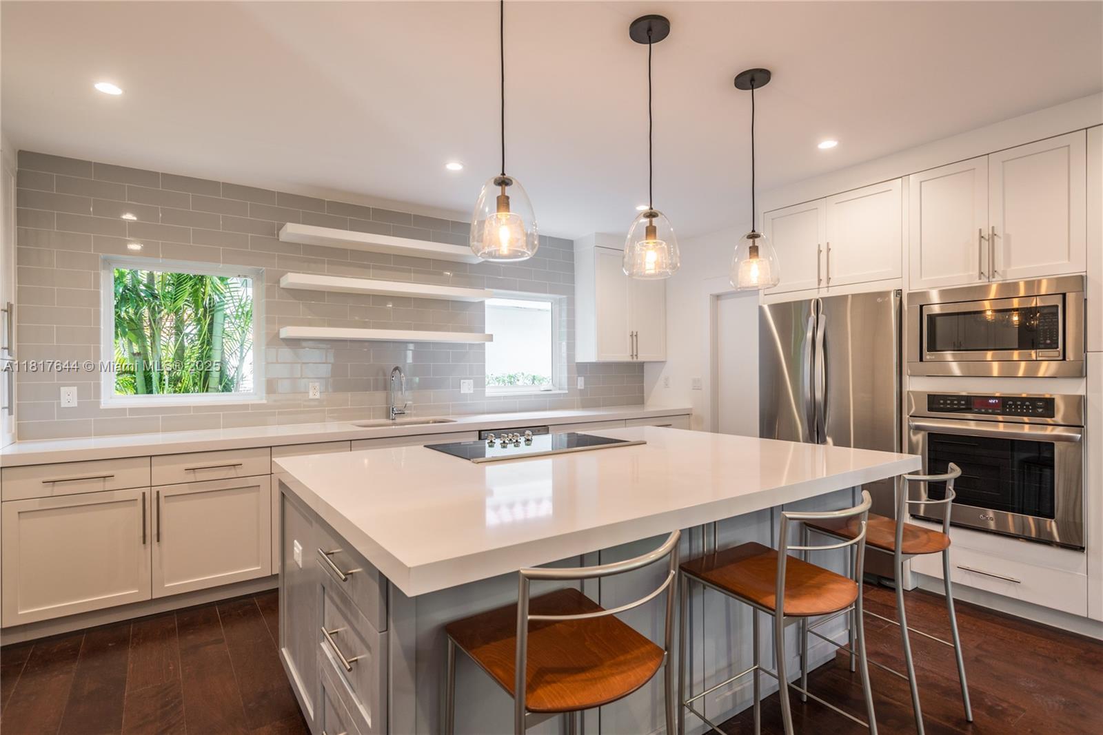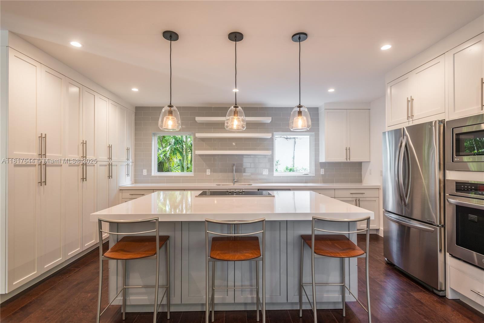 This beautifully updated home offers open-concept living with rich hardwood floors thru out. sunlight pours into every space, accentuating the refined finishes and inviting layout. the modern white kitchen impresses with a generous island, gleaming quartz counters, and abundant cabinetry—ideal for both daily living & entertaining. a cozy fireplace anchors the living room, which flows effortlessly into a private backyard oasis. the sought-after split floor plan includes a spacious first-floor bedroom and full bath—perfect for guests or home office. upstairs, the luxurious primary suite showcases a spa-inspired bath with a slipper tub & separate shower, dual vanities, and a spacious walk-in closet. 2 additional bedrooms share a modern full bath.640 PUERTA AVE, CORAL GABLES, FL 33143