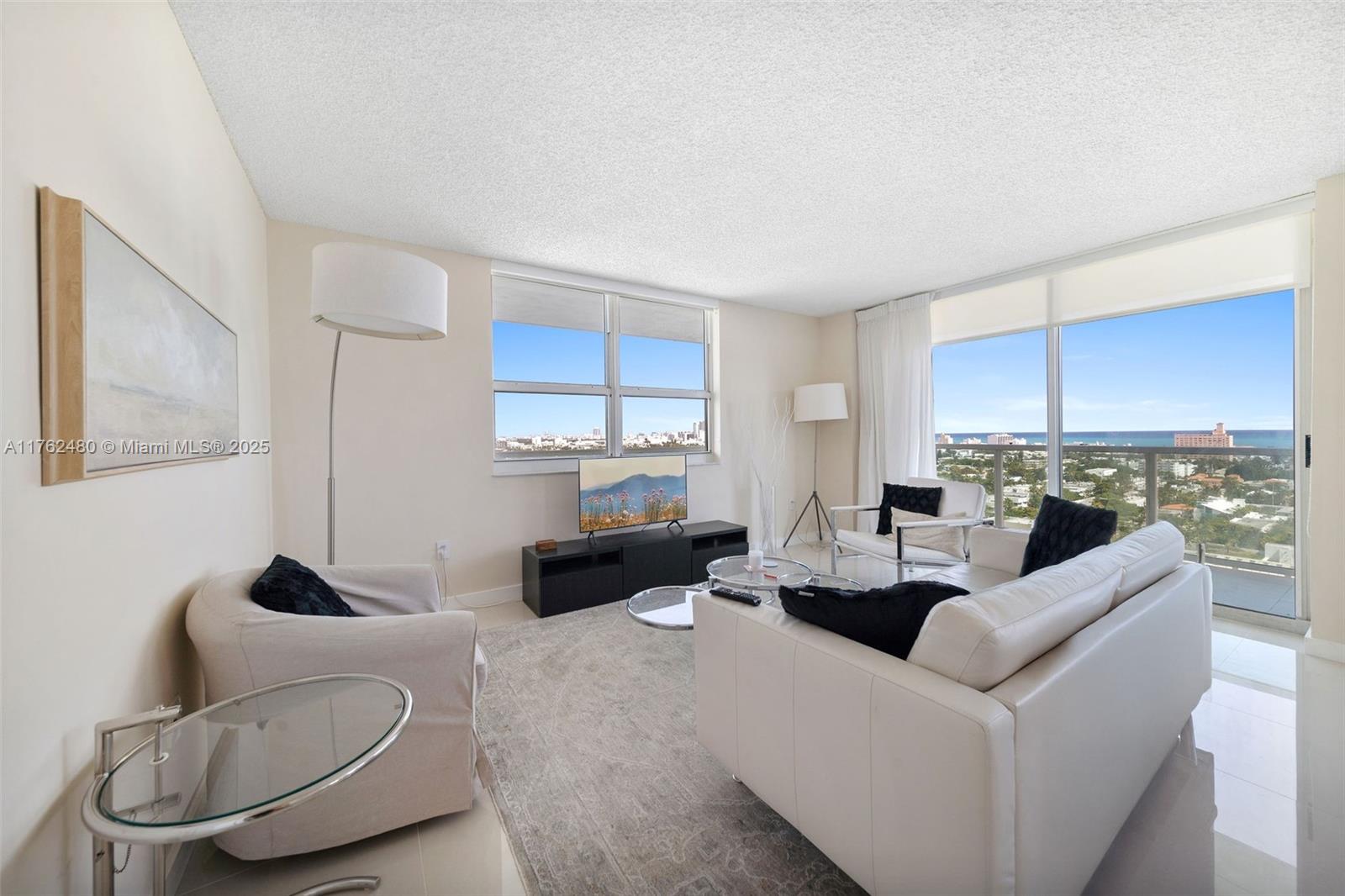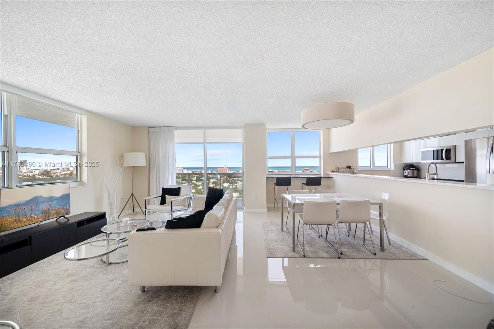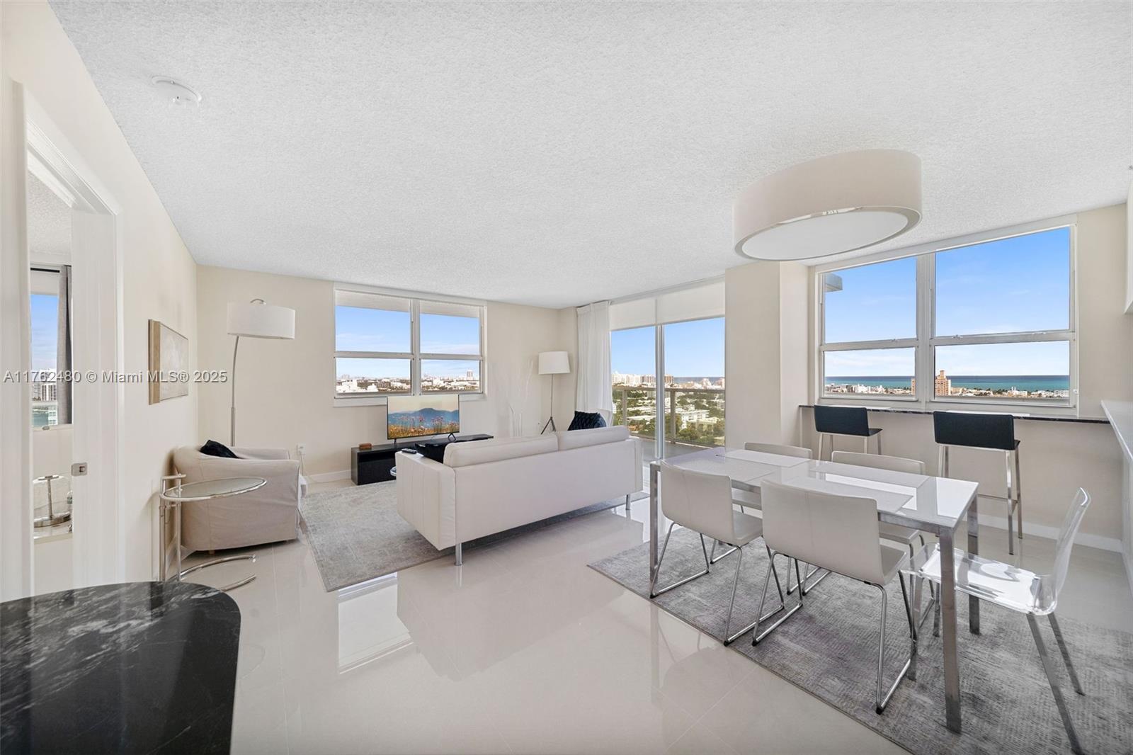 This fully furnished 2-bedroom, 2-bathroom corner unit at the floridian offers stunning bay and ocean views from its expansive wraparound balcony. filled with natural light, this northeast-facing residence features recently renovated floors, kitchen, and bathrooms, plus the convenience of in-unit laundry and parking. the floridian offers top-tier amenities, including two pools, a tennis court, a gym, a salon, and valet. conveniently located near south of fifth, top restaurants, whole foods, publix, target, and more. don’t miss this opportunity!650 WEST AVE #1912, MIAMI BEACH, FL 33139