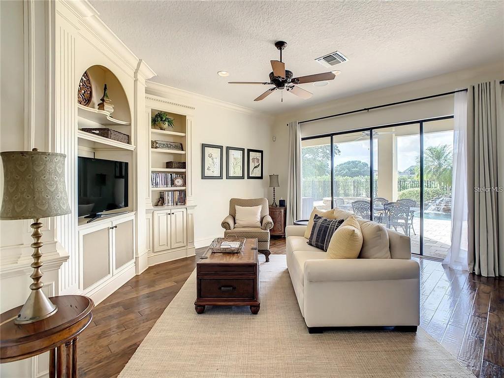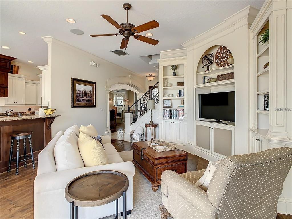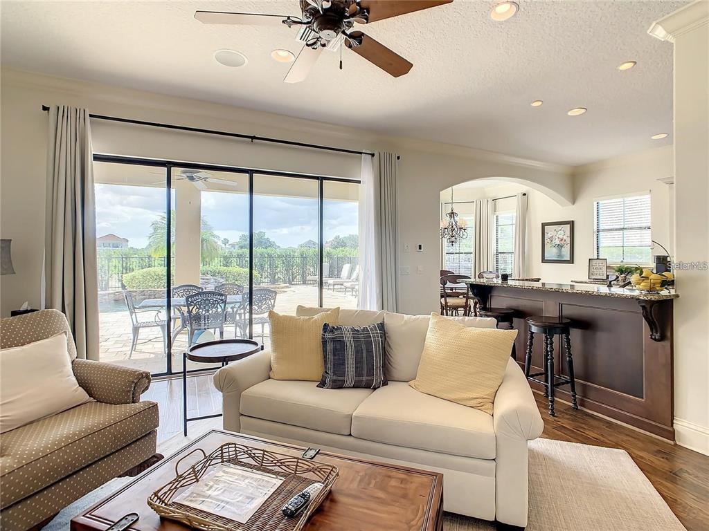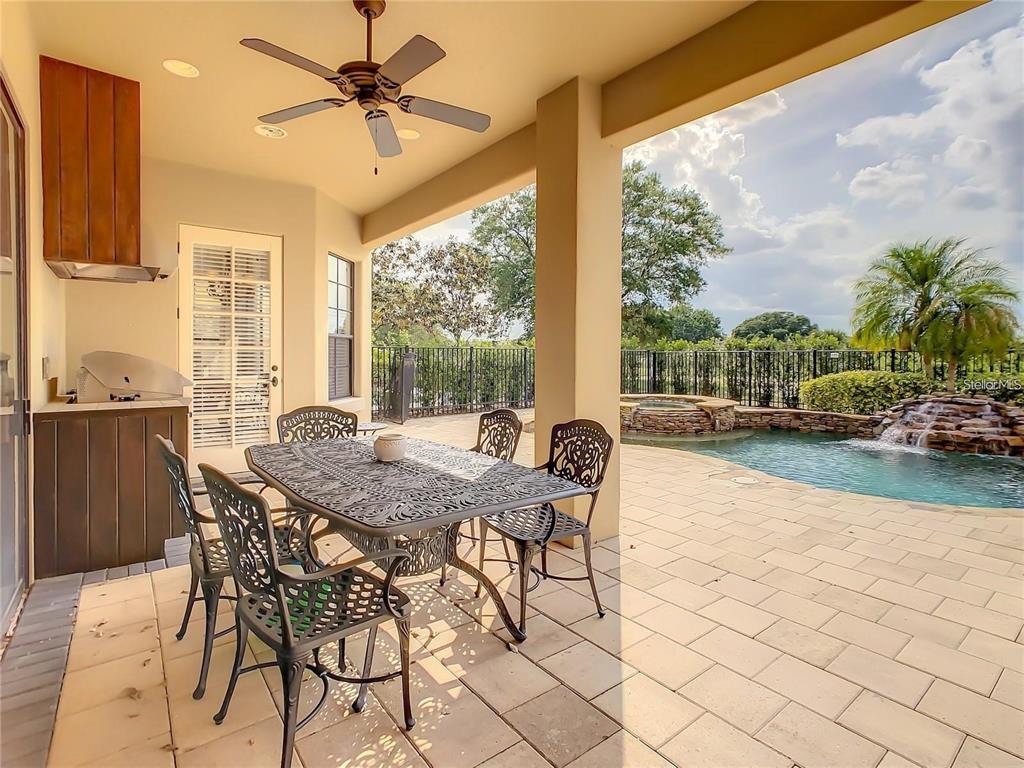 For rent this exquisite custom home with uninterrupted views of the watson course! this home includes custom built-ins, tile, and woodwork, hand-detailed archways, and a gourmet kitchen complete with a 5 burner gas stove, granite counters, and an abundance of high-end cabinetry. plenty of room for the crowd to spread out with a formal living room, family room, and a bonus room with a dry bar upstairs. all 5 bedrooms are ensuite and there are 2 powder rooms for guests. the master bedroom opens onto a real private oasis with a pool, spa, and outdoor kitchen, while 2 upstairs bedrooms and the bonus room open onto the full-length upstairs balcony. rent included golf membership, pool maintenance, landscaping, basic cable and internet.7400 GATHERING, REUNION, FL 34747