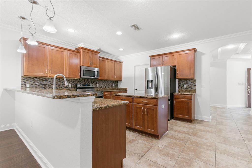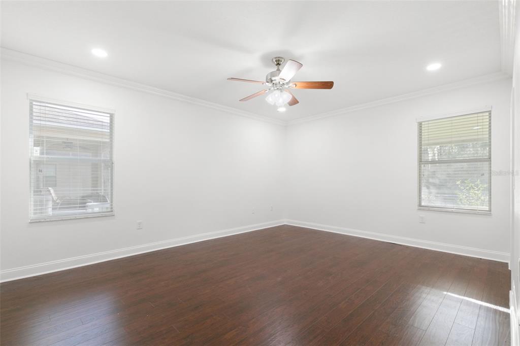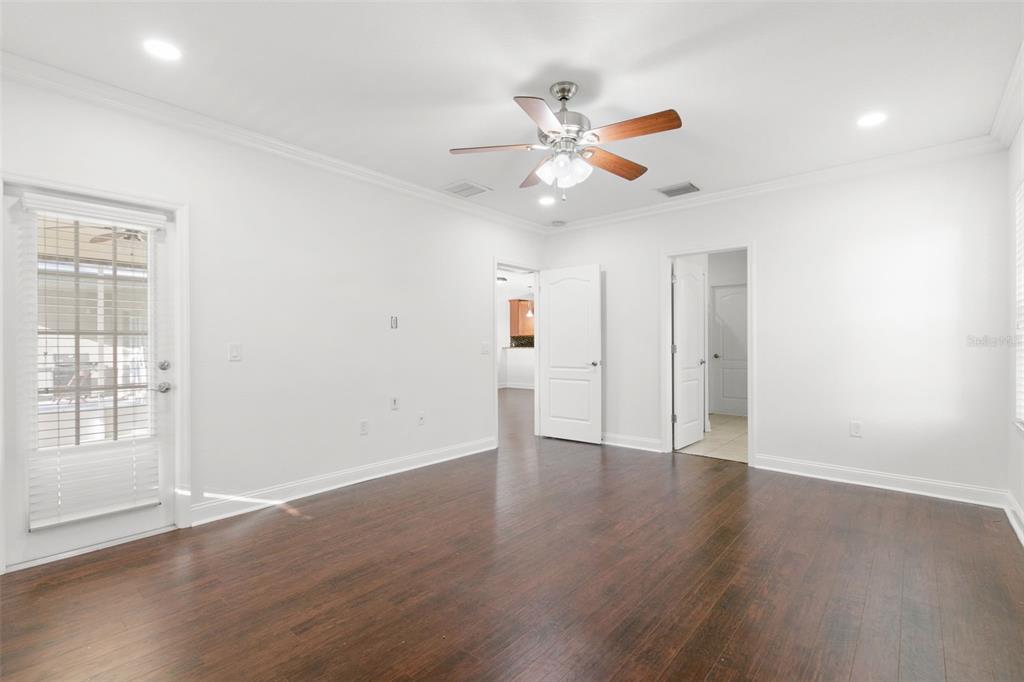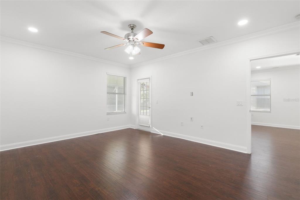 Split Bedroom Walk-In Closet(s)Ceiling Fan(s) Stone Counters Thermostat Open Floorplan Window Treatments Solid Wood CabinetsCrown Molding Primary Bedroom Main FloorExterior Features: