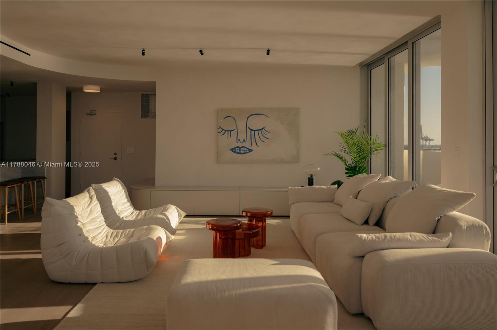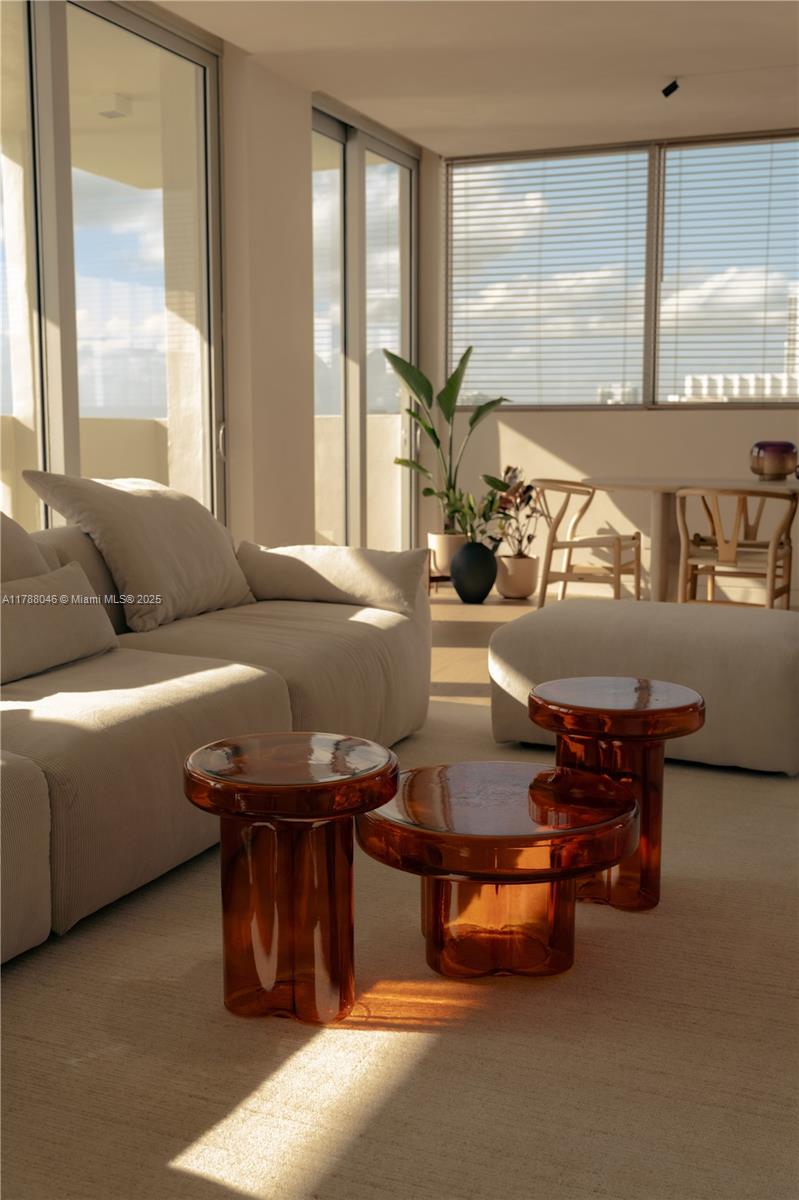 A stunning furnished designer corner residence, completely reimagined with elevated materials and exquisite craftsmanship. fully furnished with bespoke italian pieces by gaia/s studio, this home showcases red oak rio hardwood floors, hand-brushed oikos limewash walls, and refined surfaces. the custom doimo cucine kitchen is beautifully accented with emilceramica italian porcelain, while tailored window treatments add the perfect finishing touch. newly installed impact windows, along with upgraded hvac, plumbing, and electrical systems, ensure modern efficiency and comfort. with three dedicated parking spaces and exclusive dock access for boats up to 35 feet, this home embodies effortless elegance. schedule your private tour today!800 WEST AVE #PH11, MIAMI BEACH, FL 33139