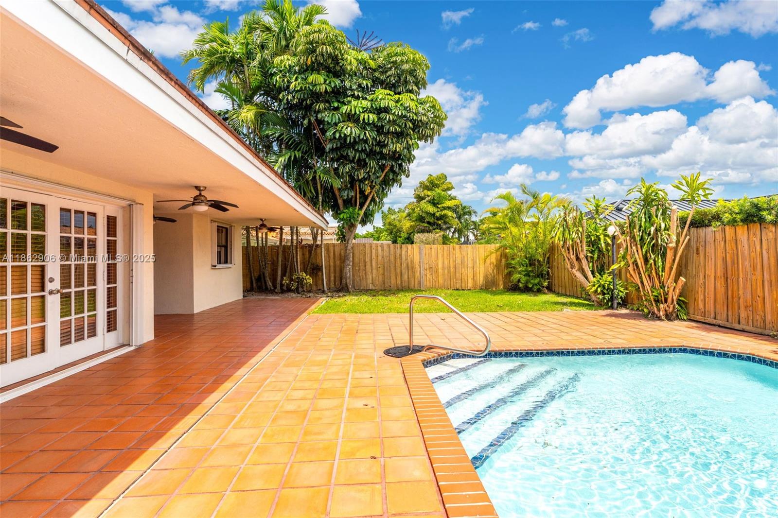 Nestled within kendallwood community on a cul-de-sac, with soaring ceilings that gracefully flow through the living, dining, and family spaces, as well as the master bedroom. enjoy views of the pool and patio from every vantage point. the well-thought-out split floor plan ensures privacy, with the grand master suite boasting a spacious walk-in closet and ensuite bath featuring double sinks, a separate tub, and shower. a private laundry room adds to the convenience. ample parking space, and fenced yard. additional amenities include a two-car garage with an automatic opener and storage shelving units. lawn and pool maintenance are included in the rental. easy to show!8131 SW 90TH AVE, MIAMI, FL 33173