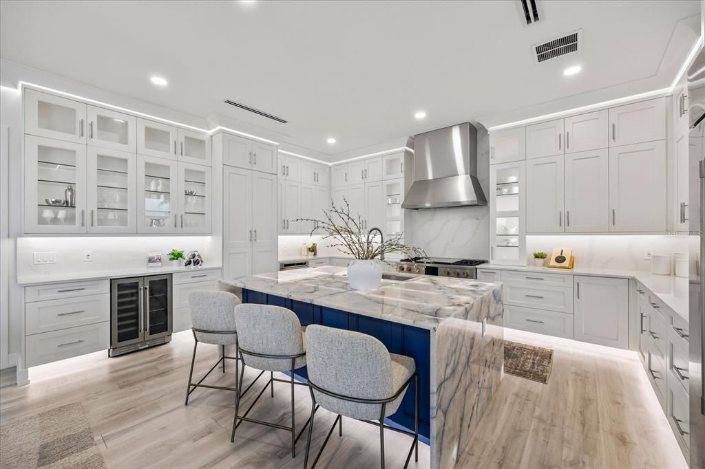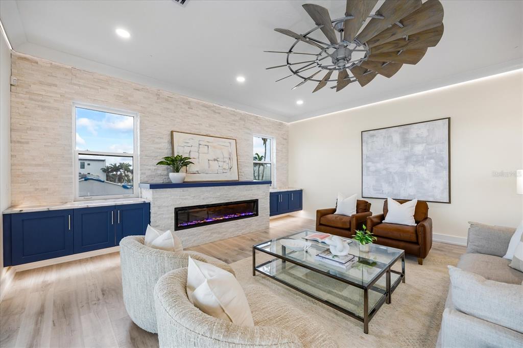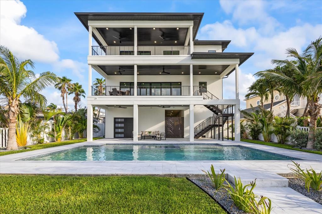 Luxury waterfront living reimagined, this newly built five-bedroom, five-bath coastal contemporary home offers a rare rental opportunity for those seeking elevated design, function, and location. designed with clean architectural lines, expansive glass, and seamless indoor-outdoor flow, the residence delivers uncompromising sophistication on every level. the main floor features a chef’s kitchen with ge monogram appliances, a quartzite island, walk-in pantry, and built-in wine cooler, opening to generous living and dining areas framed by hurricane-rated sliders. a covered terrace with a 74-inch recessed fireplace extends the living space outdoors with uninterrupted water views. upstairs, two guest suites feature private baths, while the top floor is dedicated to a stunning primary suite with a private waterfront terrace, spa-inspired bath, and custom walk-in closet. two additional guest rooms with en-suite baths complete the upper level. a commercial-grade elevator services all three floors, and a sculptural floating staircase adds architectural impact. the fenced backyard features a saltwater pool with dual sun shelves, integrated spa, and travertine decking, all surrounded by tropical landscaping. a private dock with new seawall and electric lift provides direct access to the intracoastal and easy passage to open water. built with breakaway walls, engineered wood pilings, and a full-property kohler generator, the home offers peace of mind without sacrificing style. the oversized garage accommodates four or more vehicles with 14-foot ceilings, ideal for collectors or multi-vehicle households. just minutes from john’s pass, this home is perfectly positioned for boating, deep-sea fishing, or evening sunset cruises.820 BAY PT, MADEIRA BEACH, FL 33708