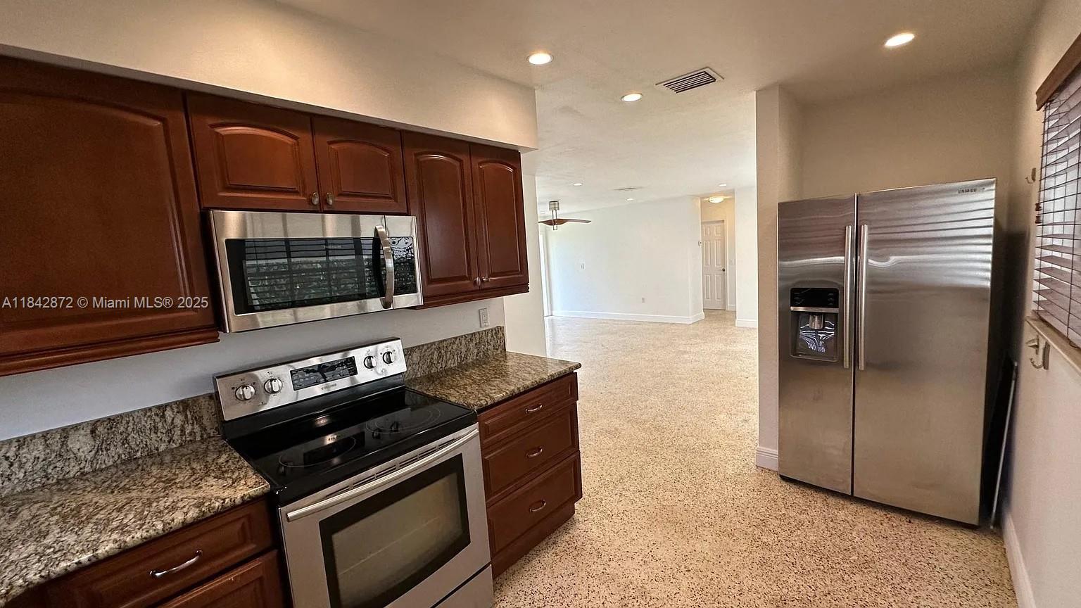 Charming single-family home in a prime family-friendly location! this cozy home features tile floors in the living areas and bedrooms, a spacious kitchen with wood cabinets, granite countertops, and newer stainless-steel appliances. the large master bedroom features a generous closet and an en-suite bathroom with a walk-in shower. enjoy the comfortable family room and a big, fully fenced backyard—perfect for entertaining. additional highlights include a new driveway, hurricane impact windows (main) & accordion shutters (others), newer a/c, surround and recessed lighting, and updated landscaping. centrally located near major highways, shopping, dining, and entertainment. a great home in a perfect location—don't miss it!8855 SW 41ST TER, MIAMI, FL 33165