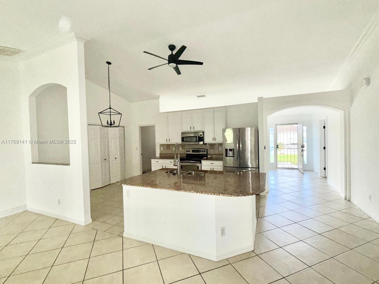 Charming and spacious 4-bedroom home with plenty of room. featuring modern granite countertops, updated kitchen and bathrooms, and sleek stainless-steel appliances. enjoy the open feel with vaulted ceilings and stylish decorator shelving. the home boasts tile flooring throughout, with vinyl floors in three of the guest rooms. relax in the screened lanai, or enjoy the fully fenced backyard surrounded by mature, lush landscaping. the property also includes a full yard sprinkler system. the master suite offers a luxurious new tile shower and a jacuzzi tub. plus, the home is equipped with city water and sewer. tour this home today, you won't be disappointed!909 SW 10TH PL #-, CAPE CORAL, FL 33991
