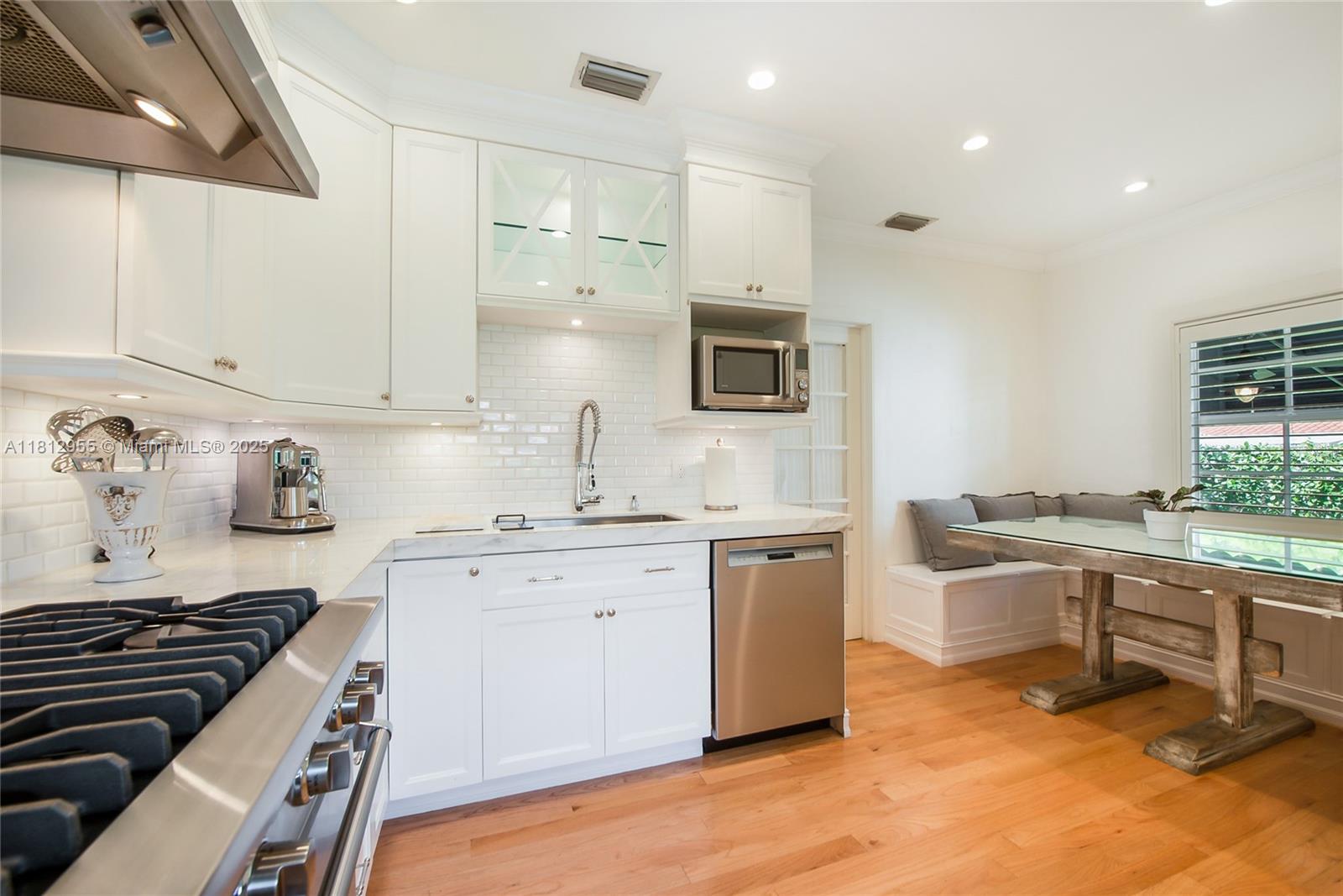 Come live in a mediterranean revival fully renovated to perfection. stunning eat-in kitchen with high-end appliances, featuring a viking pro gas range for the chef. no expense spared with calacatta gold marble in both the kitchen and bath, impact glass doors & windows, alarm, security cameras, indoor/outdoor speakers, and restored hardwood floors throughout. this unique gem offers 3 bedrooms +office/den in the main living quarters, a detached cottage with an additional bedroom, bath, & kitchen perfect for an in-law or dedicated home office. outdoor patios surround the property from which to enjoy dining al fresco or relaxing. enjoy leisurely bike rides to the coral gables golf & country club. restaurants, art galleries, theaters minutes away. this is the gables. get living!910 SANTIAGO ST, CORAL GABLES, FL 33134