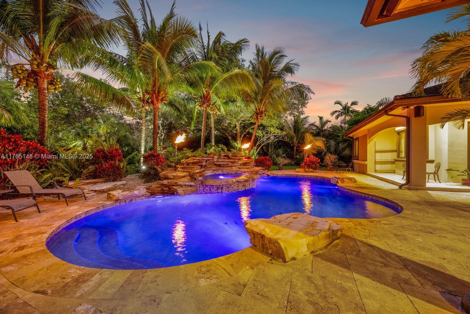 Situated on a builder’s acre in nutmeg estates near baptist hospital, this custom-designed 4-bedroom, 4.5-bathroom home with an office/den offers elegance & comfort. high-end finishes include marble floors, solid wood doors, custom built-ins & wood ceiling beams. the 20' great room with a double-sided fireplace flows into a spacious dining area & chef’s kitchen with a large island, breakfast nook & soaring ceilings. the outdoor space features a covered patio, summer kitchen, lagoon-style pool with waterfall & spa, plus a cabana bath. the primary suite offers a spa-like bathroom & walk-in closet. other features include a large circular driveway, a 2-car garage & a separate 1-car garage. set on a beautifully landscaped 39,073 sq. ft. lot with mature live oaks, it offers both privacy & charm.9425 SW 94TH CT, MIAMI, FL 33176
