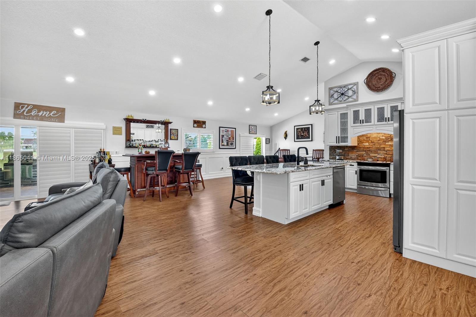 Welcome home to this stunning lakefront pool home in the desirable sun valley! this freshly painted home showcases soaring ceilings, plantation shutters & hurricane-impact windows throughout. the gourmet open kitchen features an expansive island, perfect for entertaining. luxurious dual vanities in both bathrooms, a brand-new ac, & insulated roof for elevated comfort & energy efficiency. enjoy resort-style living with a screened patio with outdoor summer kitchen & bar, & sparkling pool/spa. indulge in the open serene, fenced yard with breathtaking lake views. appreciate the convenience of a 2-car garage & generous driveway that provides ample parking. rent includes hotwire cable & internet, monthly lawn & pool care.9505 MAJESTIC WAY, BOYNTON BEACH, FL 33437