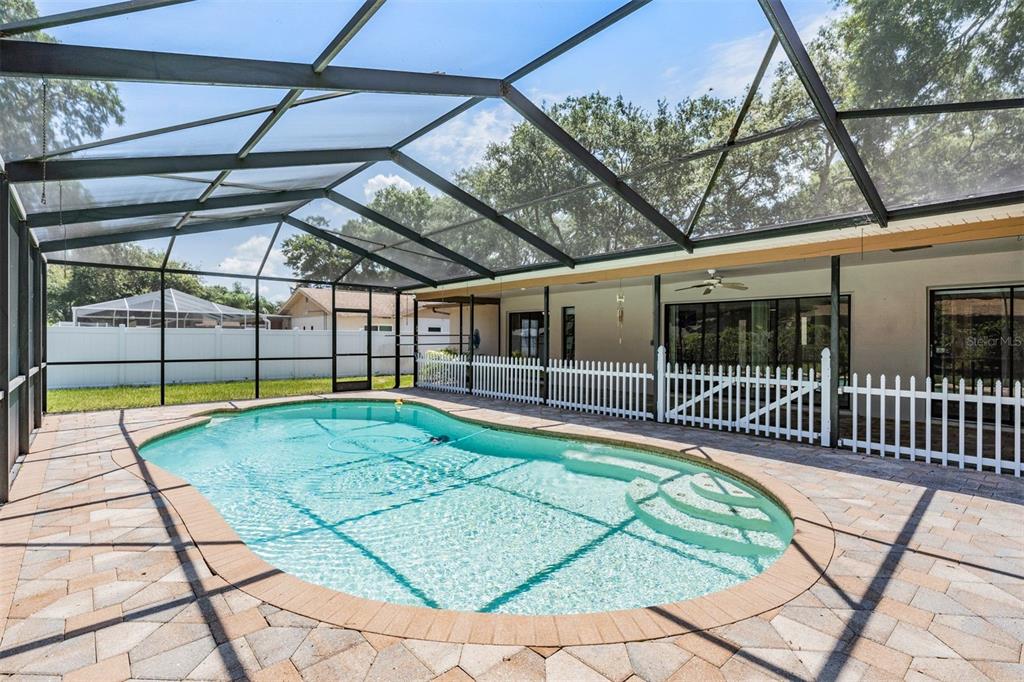 Beautiful palm harbor pool home in rustic oaks subdivision available immediately. the home offers 3 bedrooms, 2 baths, a 2 car garage, screen enclosed pool, a spacious split floor plan, vaulted ceilings, tile plank flooring throughout, dining room, large living area, large kitchen with eat-in area, cherrywood cabinets, stainless steel appliances, a primary bedroom en-suite with walk-in closet, glass enclosed step-in shower and sliding glass doors that open to the covered lanai with pavers, pool (resurfaced in 2022) and fenced yard. a-c replaced in 2024. there's also an inside laundry area and spacious 2 car garage. sorry, no pets! annual lease only! first, last, security deposit and renter's insurance is required.HOGAN, PALM HARBOR, FL 34684