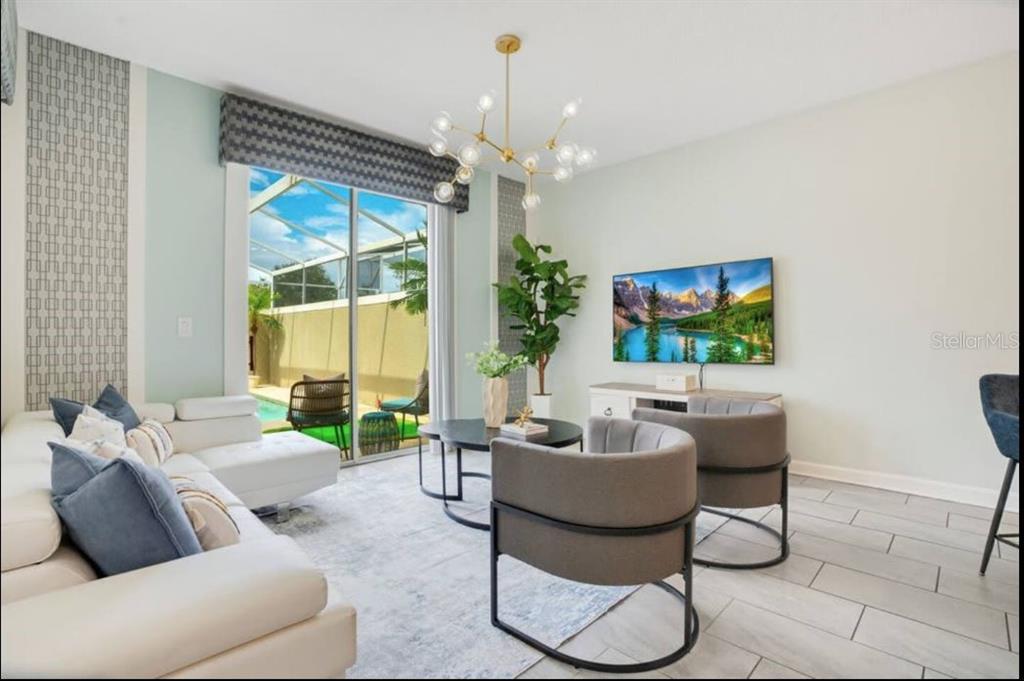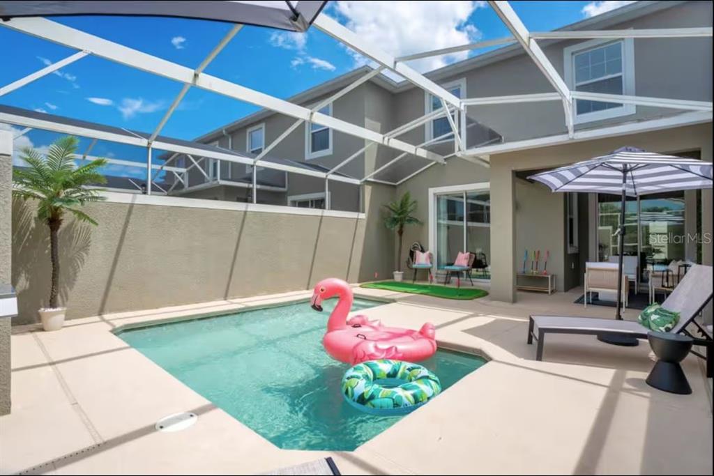 For rent discover the epitome of contemporary living in this stunning townhouse 4-bedroom, 3-bathroom home, perfectly designed for both style and comfort. step into an open-concept layout where the spacious living area seamlessly blends with a sleek, modern kitchen. featuring granite countertops, stainless steel appliances, and a large center island with bar seating, the kitchen is a true centerpiece for gatherings and culinary creations. a chic dining area with a statement light fixture flows effortlessly into the cozy yet modern living space, all bathed in natural light from oversized windows and sliding glass doors. this home offers a bright, airy ambiance that makes every moment feel special. step outside to your private retreat! the screened-in pool is perfect for a refreshing dip or lounging under the sun. the beautifully landscaped backyard offers ample space for outdoor dining, entertaining, or simply unwinding in style. every detail of this home combines modern elegance with everyday functionality, creating a space you'll love to call your own.Townhouse 4 bedrooms - STONEYBROOK SOUTH NORTH PRCL PH 2 for Rent