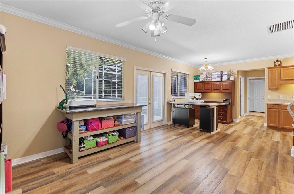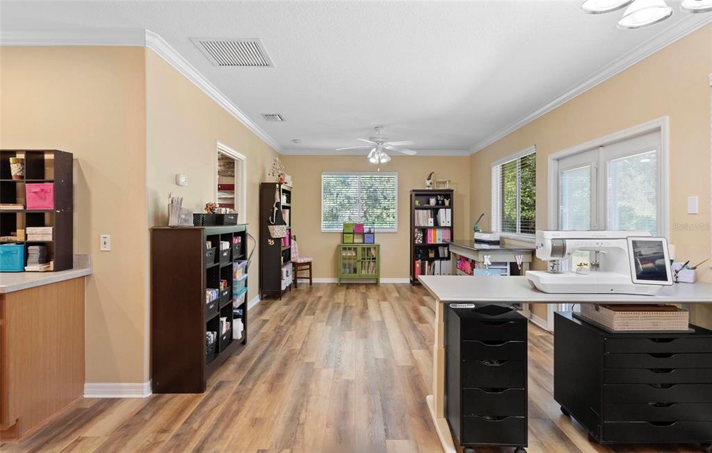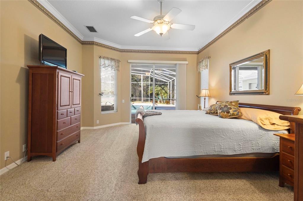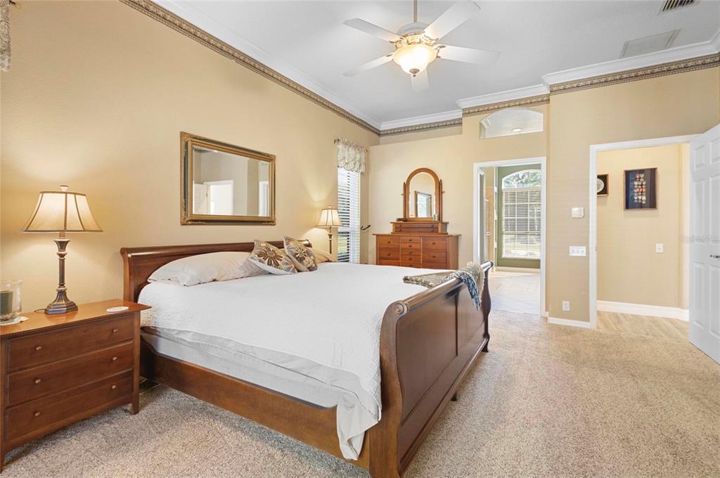 Walk-In Closet(s)Ceiling Fan(s) High Ceilings Thermostat Open Floorplan Window TreatmentsCrown Molding Primary Bedroom Main Floor Kitchen/Family Room Combo Tray Ceiling(s)Exterior Features: