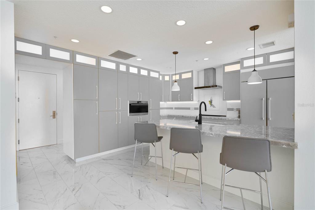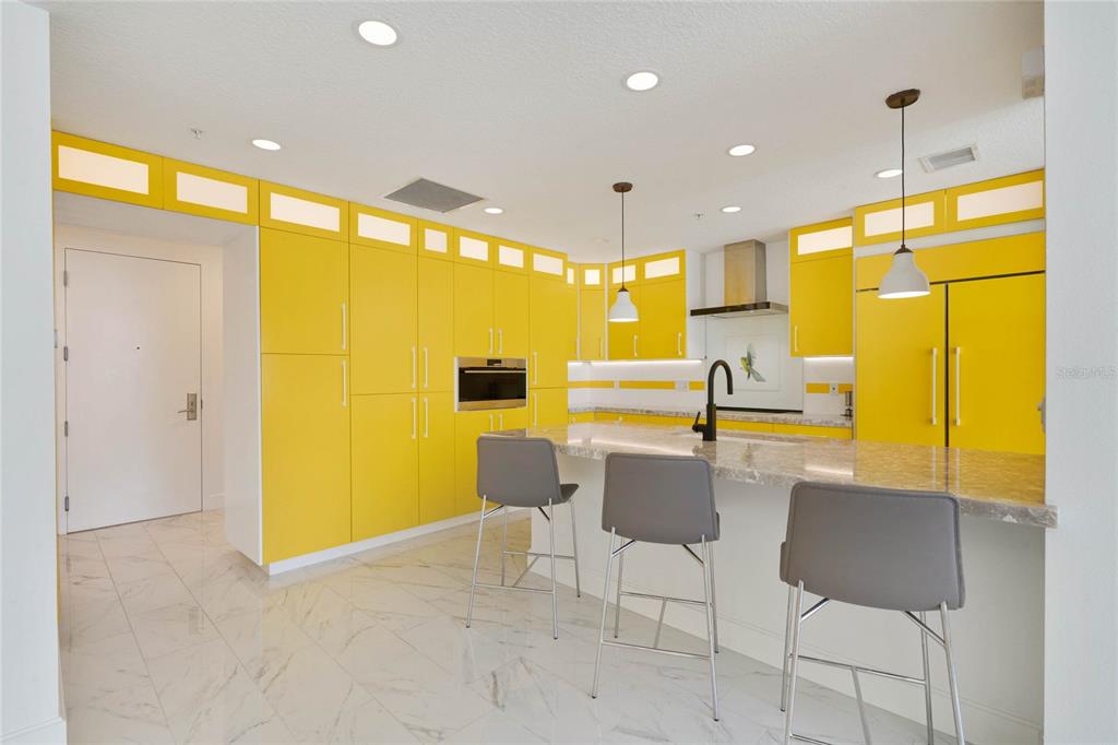 One or more photo(s) has been virtually staged. experience unparalleled elegance in this fully renovated 11th-floor condo at the sanctuary, nestled in the vibrant south eola / thornton park area of downtown orlando. this bright, open floor plan features a sleek midcentury modern kitchen adorned with bold yellow cabinetry, stunning cambria bellwater quartz countertops, subzero refrigerator, wolf steamer oven and ample storage space. the primary suite offers breathtaking views, complete with custom built-ins that enhance both style and functionality. step onto your private balcony to take in the picturesque cityscape or unwind by the beautiful community pool.location is everything, and you’ll find yourself just steps away from lake eola, the farmers market, dr. phillips center, the kia center, the abbey, and an array of restaurants—including three located on the ground floor, like the stubborn mule. enjoy easy access to shopping, nightlife, and publix, all within walking distance. enter through an elegant lobby with 24-hour concierge service and top-notch security. the building boasts five elevators, gated assigned parking, and an impressive fifth-floor amenities deck featuring a stylish residents' lounge with a media room, kitchen, and restrooms—perfect for hosting gatherings.outside, you'll find a newly redecorated pool area with six cabanas, an infinity pool, hot tub, and two industrial gas grills, all surrounded by lush landscaping. stay active in the state-of-the-art fitness center, complete with men's and women's locker rooms, steam and sauna facilities, and a dedicated car wash area on the south side of the building.this condo seamlessly combines luxury and convenience in one of orlando’s most desirable locations. don’t miss the chance to make it your own! * some photos have been digitally edited*100 S EOLA #1112, ORLANDO, FL 32801