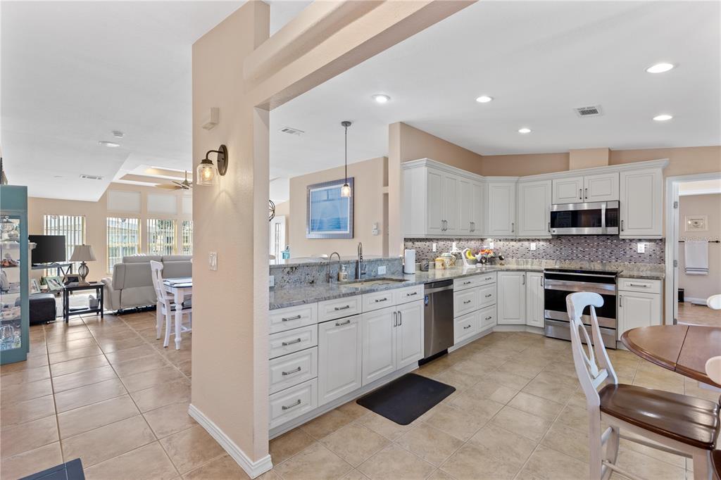 Port charlotte village was voted #1 manufactured home park in 2024! ** not in flood zone** extraordinary triple-wide 3-bedroom, 2-bathroom home with high-end features in a premier 55+ community! this one-of-a-kind, fully furnished home offering luxury, comfort, and top-tier upgrades. from the moment you enter, you'll be captivated by the sprawling open floor plan and thoughtful high-end finishes throughout. at the heart of the home is an oversized gourmet kitchen, designed to impress with stunning granite countertops, top-of-the-line stainless steel appliances, and custom soft-touch cabinetry with pull-out drawers for maximum storage and convenience. the spacious dining area and living room are flooded with natural light, thanks to double-pane windows all around, creating a bright and inviting atmosphere. the primary bedroom is a true retreat, featuring soaring ceilings, rich new wood flooring, and multiple walk-in closets. it is complemented by dual remodeled en-suite bathrooms, both updated with granite countertops and elegant tile work, offering privacy and modern luxury. a standout feature of this home is the converted florida room, transformed into a high-end bar area, making it perfect for entertaining guests or simply enjoying a relaxing evening at home. the additional bedroom/office space is just as impressive, featuring a built-in desk with an expandable extension for a larger workspace and a pull-down murphy bed, ensuring versatility for work or hosting visitors. for the ultimate entertainment experience, this home is equipped with a premium surround sound system and an intercom system, allowing you to enjoy music throughout the home while staying connected with ease. outside, the gorgeous screened-in front lanai offers a serene space to unwind, complete with a privacy shade for comfort and relaxation. this home also comes with a complete hvac system installed in 2018 and a brand-new roof (2024) for added peace of mind. this home offers an unparalleled blend of elegance, space, and modern convenience. don’t miss your chance to own this extraordinary property in a fantastic 55+ community! furniture is negotiable1000 KINGS #438, PORT CHARLOTTE, FL 33980