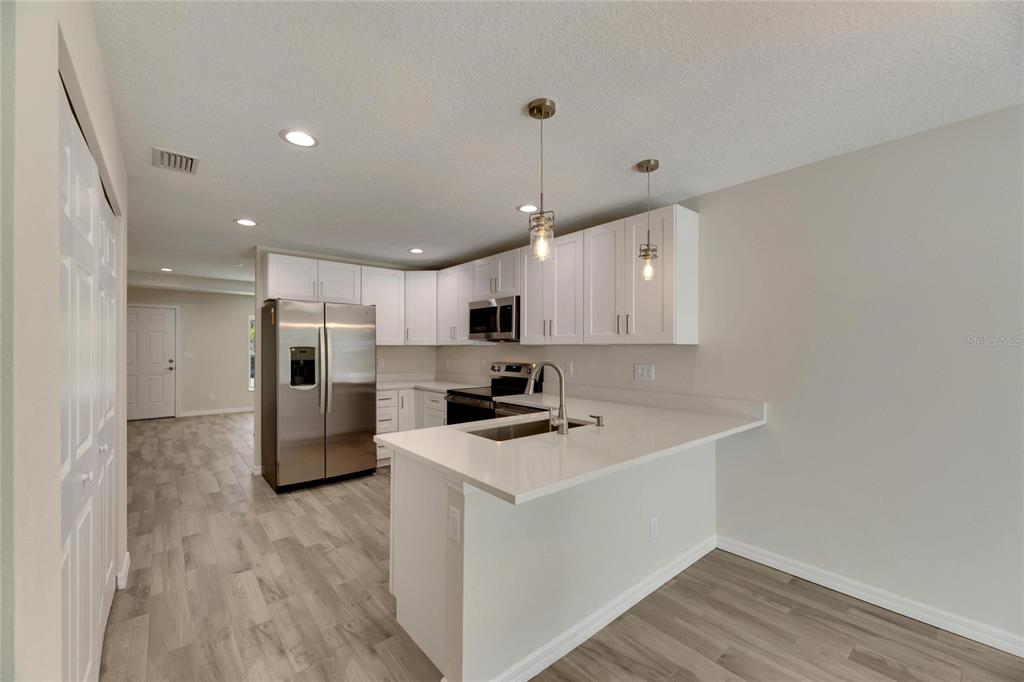 Nestled on hagle park rd, this brand-new 4-bedroom, 2-bathroom home offers a peaceful lifestyle without compromising on convenience. with no hoa or cdd, enjoy the freedom to make this property truly your own. this home features carpeted floors in three bedrooms for added comfort, with tile throughout the rest of the home, including the office/fourth bedroom. the gourmet kitchen boasts solid wood cabinetry, sleek quartz countertops, and a large single-bowl sink—perfect for daily living or entertaining. both bathrooms are finished with high-quality materials, including solid wood cabinets, ensuring style and durability. a truly move-in ready home in an ideal location.1002 HAGLE PARK, BRADENTON, FL 34212