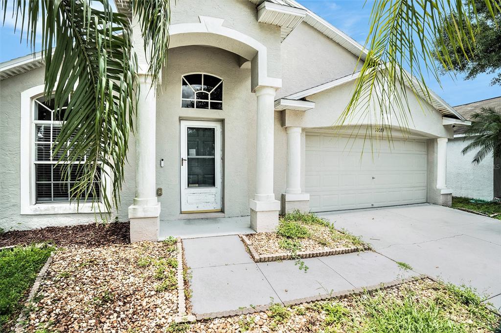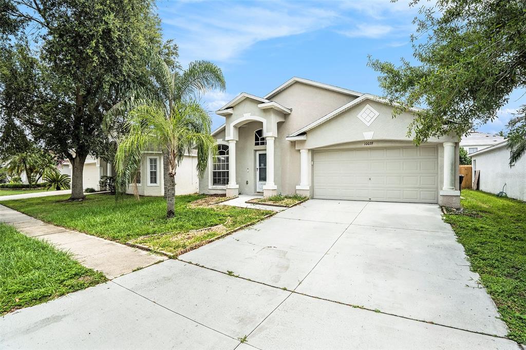 Short sale. step inside this natural light-filled 3-bedroom, 2-bath home where comfort and convenience come together. the primary bedroom has vaulted ceilings and terrazzo flooring, and is complete with a double vanity and a large walk-in closet that makes getting ready a breeze. the open kitchen and dining area flow easily, filled with natural light and easy-care laminate floors—perfect for everyday meals or weekend gatherings. enjoy the florida sunshine in both the front and back yards, surrounded by swaying palm trees. the spacious 2-car garage adds bonus room for storage or parking. this home is ready for you to come in and make it your own. don’t wait—schedule your showing today and imagine the possibilities!10039 CREEK BLF, RIVERVIEW, FL 33578