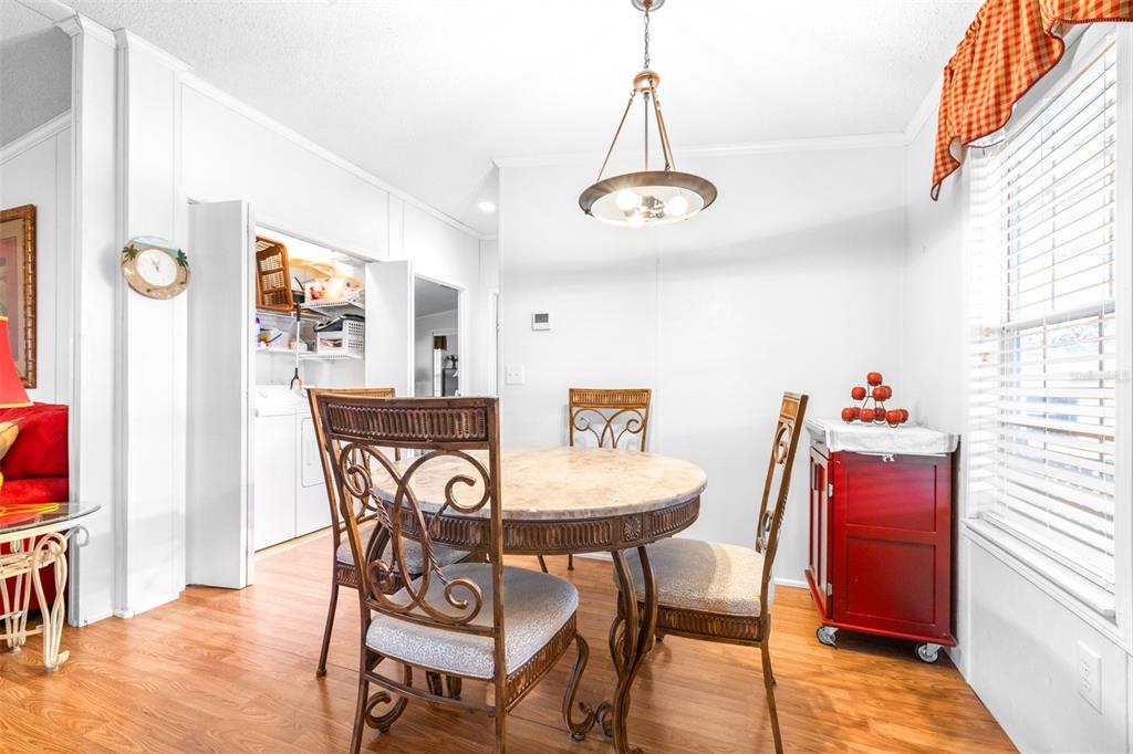 Ceiling Fan(s) Thermostat Window TreatmentsCrown Molding Primary Bedroom Main Floor Kitchen/Family Room ComboExterior Features: