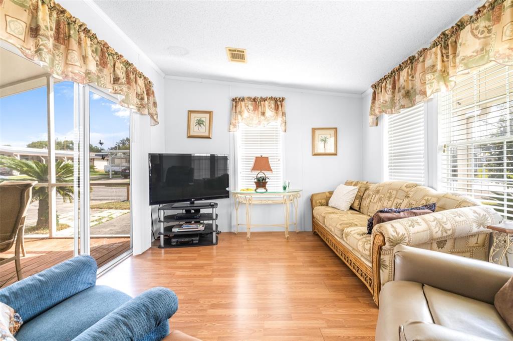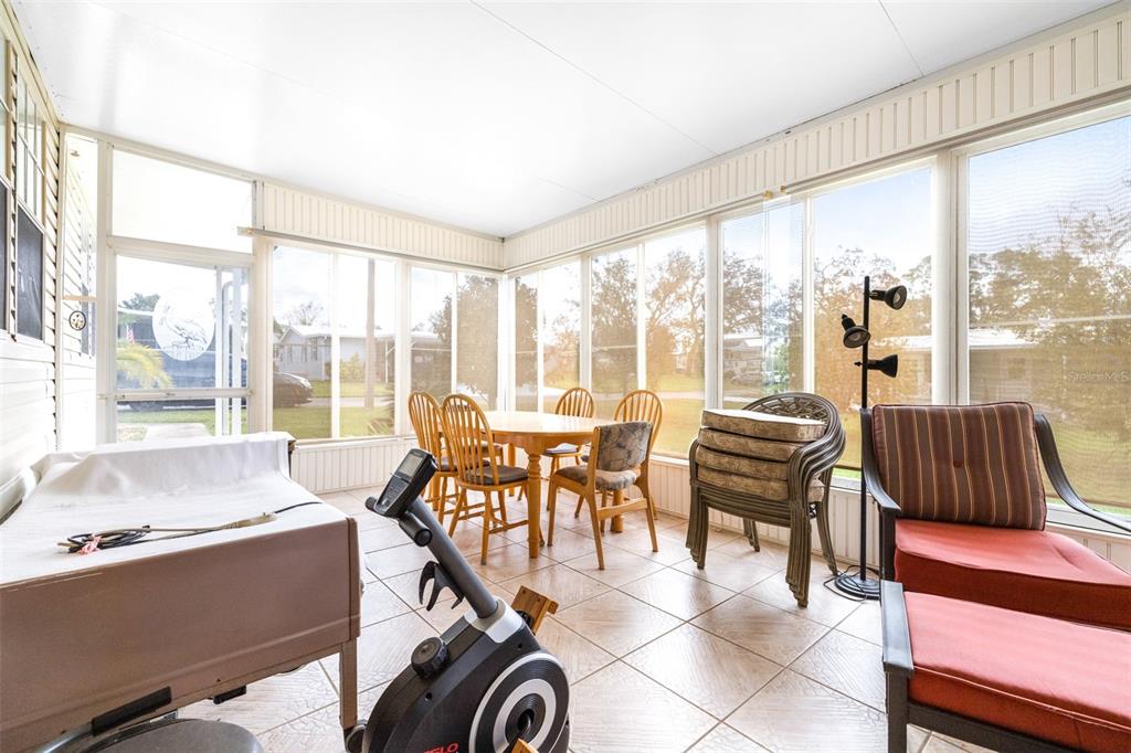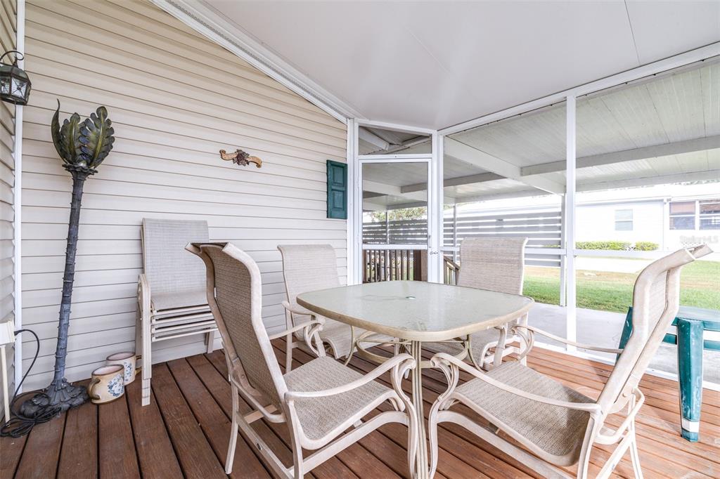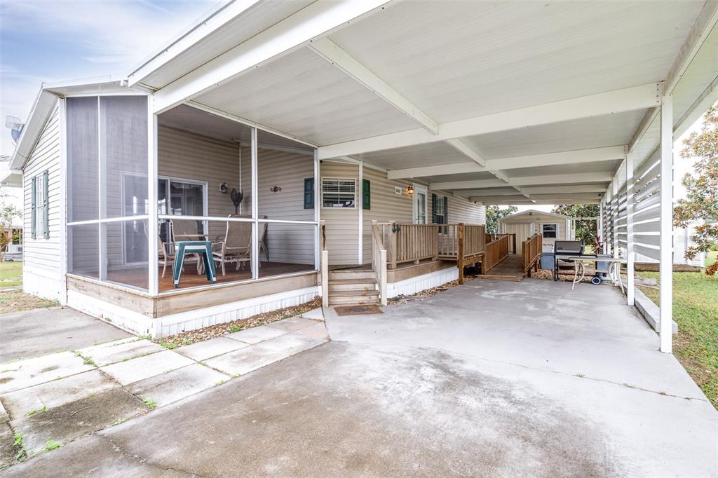 Welcome to your new home in the desirable 55+ gated community of country aire manor! situated on a spacious ¼-acre lot, this property offers a one-car carport with additional parking spaces. this turn-key furnished home is ready for you to move in—just bring your personal belongings! designed with accessibility in mind, the home features a wooden ramp for easy entry. inside, you'll find a generous open floor plan that seamlessly connects the kitchen, dining, and living areas, perfect for entertaining or relaxing. with two bedrooms and two bathrooms, the layout includes a bonus room that can serve as a family room or home office. the master bedroom is a spacious 13x11 and includes an en-suite bathroom with a walk-in shower. enjoy your morning coffee or unwind in the evenings on the expansive 11x36 screened lanai, complete with windows and an optional ac unit to keep you cool. an additional screened front porch (11x12) offers even more space for relaxation. this property also includes two storage sheds for all your needs. the roof is only two years old, the ac was updated in 2018, and all appliances, including the washer and dryer, are included. country aire manor offers fantastic community amenities, including a heated pool, clubhouse, shuffleboard, pickleball, bocce ball, and a dog park. buyer may be eligible for lender concession when working with preferred lender - inquire for details.10045 WELLINGTON, DADE CITY, FL 33525