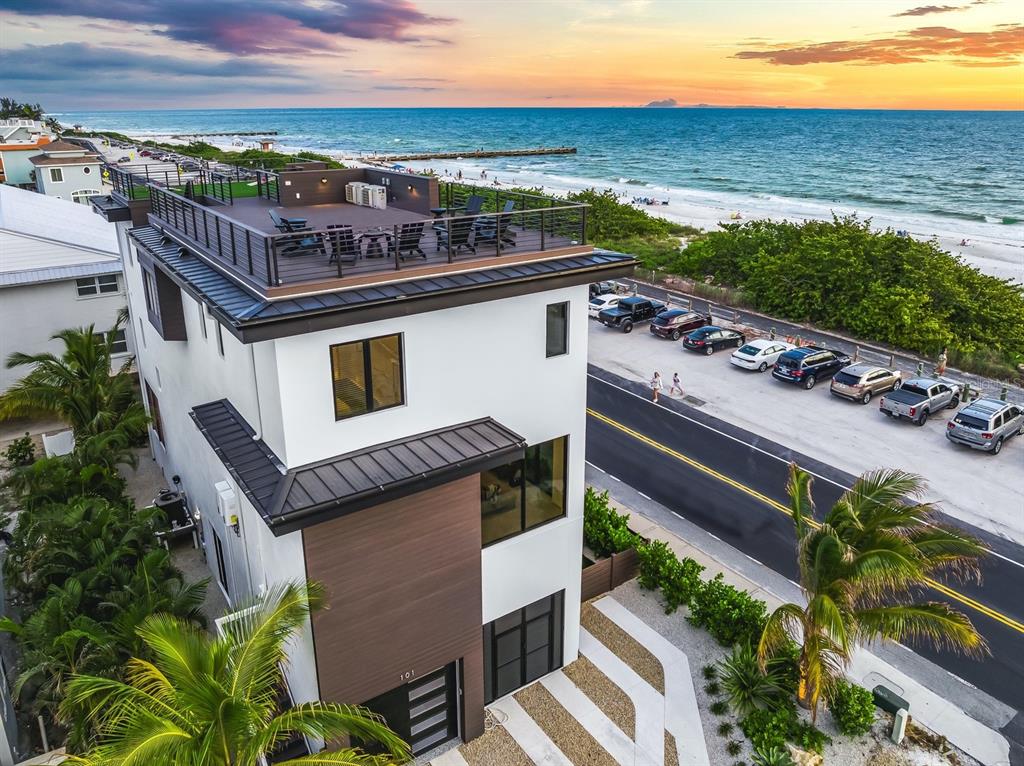 Experience unparalleled luxury in this brand-new, turnkey furnished home on anna maria island, offering full, unobstructed views of the gulf of mexico’s pristine beaches. this exquisite six-bedroom, five-and-a-half-bathroom residence spans over 3,300 square feet of impeccably designed living space, where every detail has been thoughtfully crafted for comfort and style. this residence boast an elevator, ensuring seamless accessibility throughout the home. the open-concept great room is the heart of the home, showcasing panoramic gulf views that create the perfect setting for both relaxation and entertaining. a gourmet kitchen, equipped with top-of-the-line appliances, high end cabinets and an elegant indoor dining area, seamlessly blends functionality with sophistication. for those who love dining outdoors, a spacious balcony offers a serene setting with breathtaking water views. the primary suite is a private sanctuary, featuring a luxurious king-sized bed, a spa-inspired ensuite bathroom with a walk-in shower, standalone soaking tub, and double vanities. each guest bedroom is equally inviting, offering ample storage and an elevated level of comfort for family and friends. the outdoor living spaces are designed to impress, with a rooftop deck that stands as the crown jewel of the home. the outdoor living space is spectacular and features a fully equipped outdoor kitchen, comfortable seating, and a cozy fire pit, where you can enjoy mesmerizing sunsets and starlit evenings. the backyard is a private oasis, complete with a unique pool and in-ground spa, as well as a poolside putting green, perfect for unwinding and enjoying the florida sunshine. located in bradenton beach, this home offers the best of island living, with the beach just steps away and vibrant local dining and shopping nearby. whether exploring the island via the free trolley, renting a golf cart, or strolling the scenic streets, this property places you at the heart of all that anna maria island has to offer. offering breathtaking beach views from nearly every room, this home is a rare opportunity to own a piece of paradise. whether you're in search of your forever home or a lucrative investment property, this is the one for you. home is currently a successful vacation rental. don’t miss your chance to make this coastal dream your reality.101 7TH S, BRADENTON BEACH, FL 34217