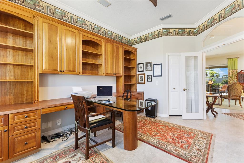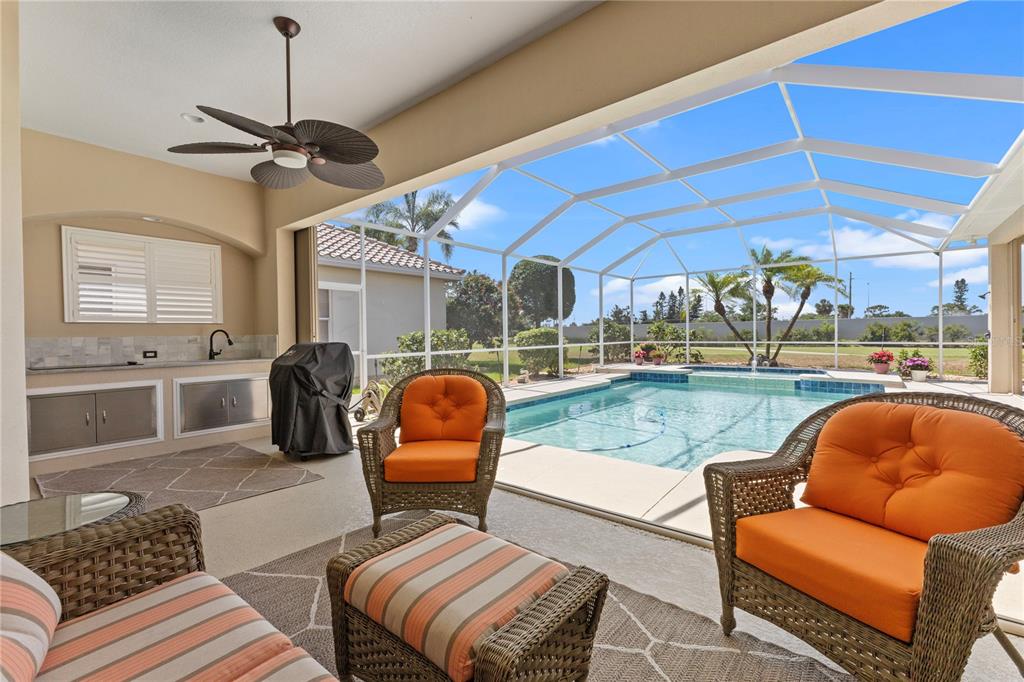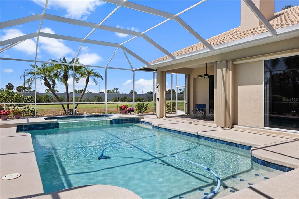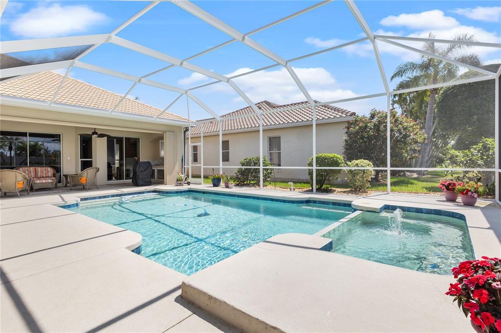 Nestled in the award winning pelican point golf & country club, this stunning 3-bedroom, 3-bathroom home offers a perfect blend of luxury, comfort, and golf course and partial water views. recently updated with a new roof, this home features soaring tray ceilings and a spacious office with built-in cabinetry, combining elegance with functionality. the gourmet kitchen boasts granite countertops, a large island workspace, and ample storage, while each of the three updated bathrooms exudes modern sophistication. an oversized bonus room with a built-in window seat and wet bar provides the ideal space for relaxation or entertaining. the primary suite is a private retreat, featuring an ensuite bath, two walk-in closets, and a serene ambiance to unwind. the inviting family room showcases custom built-in cabinetry, a cozy fireplace, and a built-in sound system for the ultimate entertainment experience. step outside to an expansive screened lanai designed for year-round enjoyment, complete with a sparkling pool, spa, outdoor kitchen, and shower—the perfect setting for hosting friends or simply soaking up the florida sunshine. ideally located just minutes from downtown venice, this home offers easy access to charming restaurants, boutique shops, and pristine beaches. living in pelican point golf & country club is more than just homeownership—it’s an invitation to a vibrant and welcoming lifestyle. this exceptional community offers an award-winning 27-hole golf course, tennis courts, pickleball, a junior olympic-size swimming pool, a state-of-the-art fitness center, and a variety of social events to bring neighbors together. whether you're an avid golfer, fitness enthusiast, or simply seeking a strong sense of community, this oasis awaits!1010 GROUSE, VENICE, FL 34285