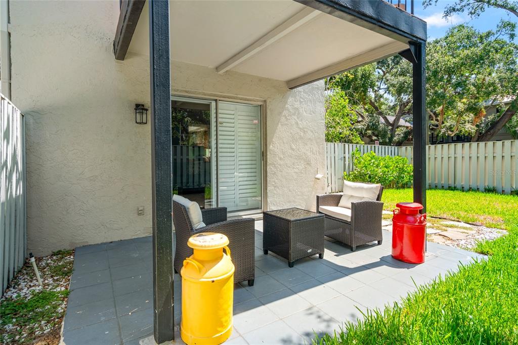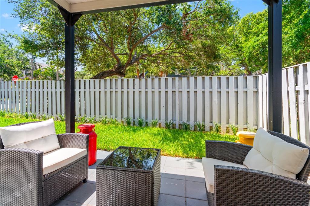 Incredible location…tucked in among the stately homes and treelined streets of new suburb beautiful- one of south tampa’s most sought after boroughs (no flood zone/never flooded) 8 minutes to downtown tampa & 12 minutes to tampa international airport. this ground floor condo with a highly unique private back yard is steps to iconic berns steakhouse, 1/2 mile to bayshore blvd & hyde park village. walk to the best of south howard (soho) restaurants & bars. this stylish residence features new luxury vinyl plank flooring, elegant baseboards, an updated bathroom, plantation shutters & brand new hurricane impact windows. the layout flows into a private, fenced & community maintained yard with lush sod, irrigation, and a spacious coered patio—perfect for outdoor relaxation & al fresco dining. enjoy the vibrant neighborhood with walkable access to soho, the epicurean hotel, water + flour. as part of new suburb beautiful you’ll enjoy afternoon walks under a majestic canopy of oaks and among tampa’s most picturesque homes. additional highlights include in-unit laundry, a newer a/c system, and a 2016 roof. pet-friendly and move-in ready, this is urban south tampa living at its best! perfect for the working professional or retiree looking for only the best neighborhood & low maintenance dwelling that will allow you to lock and go with no worry. the community allows for short term rentals (30 day minimum) ideal for owners who live in tampa seasonally or want to rent their unit while traveling.1011 S MOODY #11, TAMPA, FL 33629