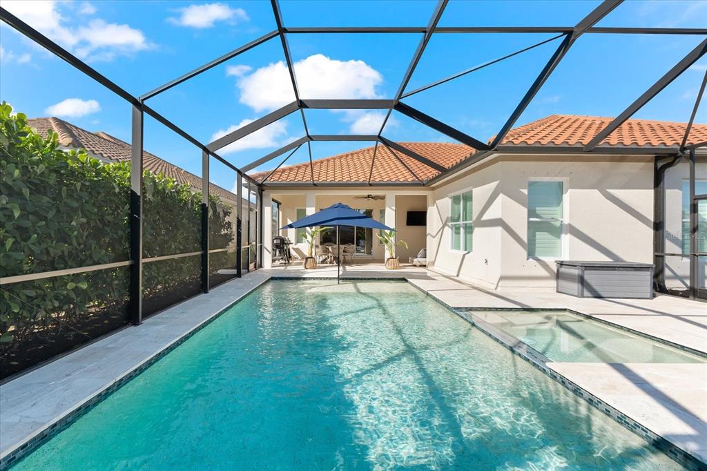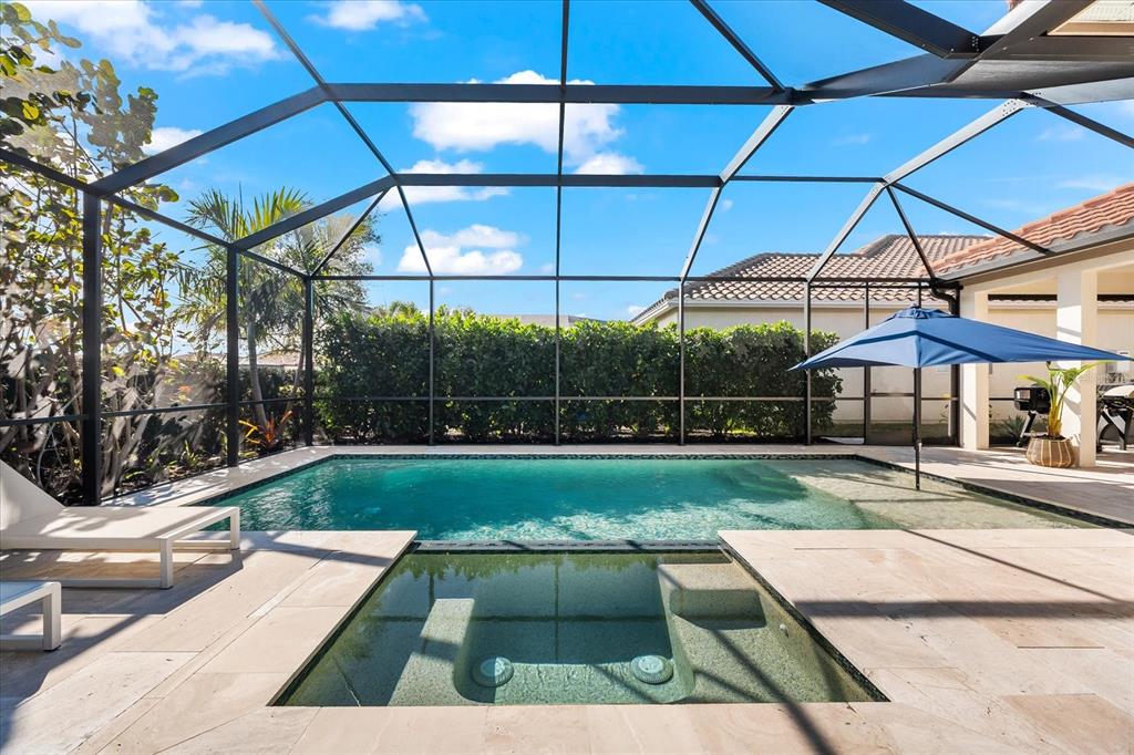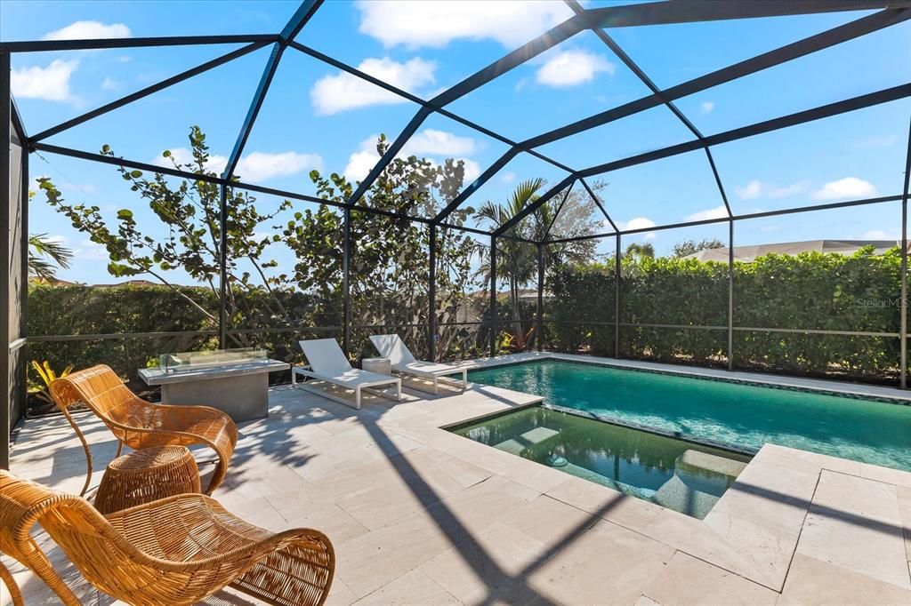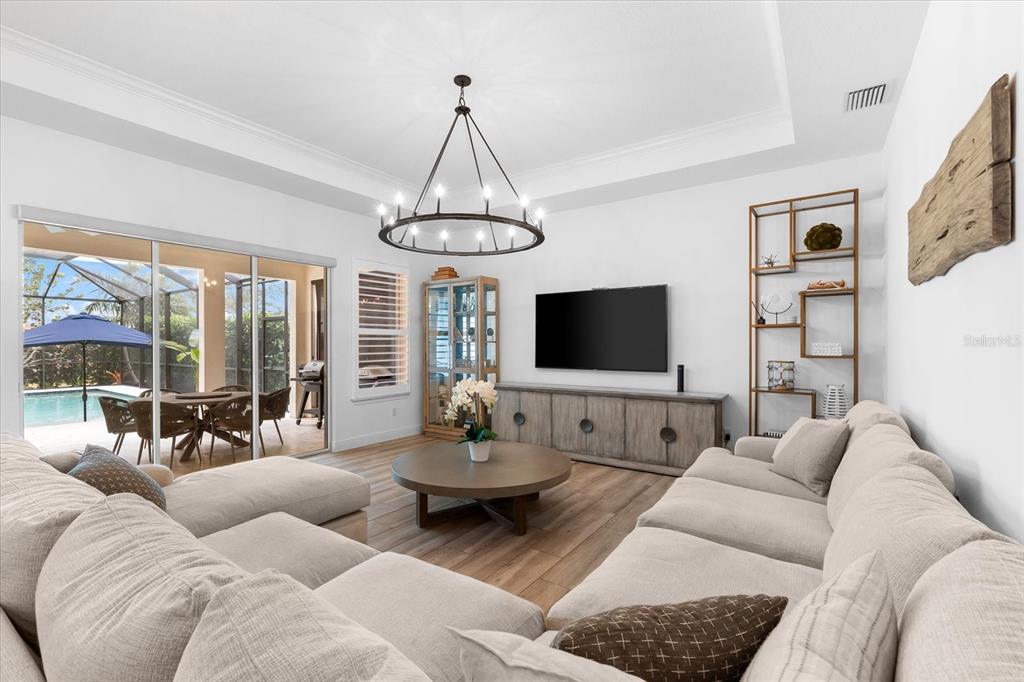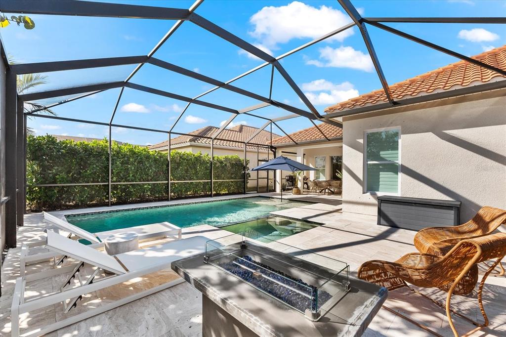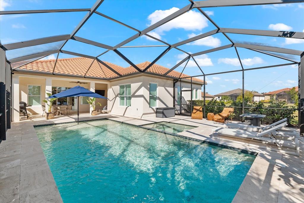 This meticulously designed 3-bedroom, 3-bathroom home offers an exceptional blend of comfort, style, and functionality, featuring a thoughtfully planned split floor plan with an office/den for added versatility. ideal for both families and entertaining, the layout strikes a perfect balance between privacy and openness. the heart of the home is the expansive kitchen, which boasts two large islands—perfect for meal preparation, casual dining, and hosting gatherings. the kitchen is outfitted with an abundance of cabinetry, a well-appointed butler’s pantry, and a walk-in pantry, providing excellent storage options. the adjacent dining and family room area forms a beautiful great room, designed for both formal and informal events. large sliding glass doors effortlessly lead out to the stunning pool area, creating a seamless indoor-outdoor living experience. the primary suite is an absolute standout. double doors open into a serene retreat, offering tranquility and privacy. the newly custom-designed walk-in closet provides an extraordinary amount of storage, while the luxurious primary bath features large vanities, a rain shower, and an abundance of natural light streaming through the windows, creating a spa-like oasis. the thoughtfully designed guest accommodations ensure comfort and privacy, with one guest bedroom featuring a private ensuite. step outside to the breathtaking, lushly landscaped backyard, where you’ll find a custom heated saltwater pool and hot tub with a large sun shelf—perfect for lounging or relaxing under the sun. the pool area features travertine throughout, adding both elegance and durability. the area is fully screened for additional comfort and also features pull-down privacy screens, enhancing the serene environment for relaxation and entertaining. the meticulous landscaping offers a peaceful setting that ensures both beauty and privacy. notable upgrades include plantation shutters throughout the home, as well as automatic blinds in key areas, adding both style and convenience to the space. for added convenience, this home includes a spacious 2-car garage, providing ample storage and parking space. as a resident of rosedale golf and country club, this home includes a social membership, granting you access to the vibrant community and its exceptional amenities. additional memberships, including golf memberships, are currently available, allowing you to fully embrace the luxurious country club lifestyle. with its outstanding features, private outdoor space, and prime location, this home offers the perfect retreat for those seeking both luxury and comfort. don’t miss the opportunity to make this spectacular property yours!10120 CARNOUSTIE, BRADENTON, FL 34211