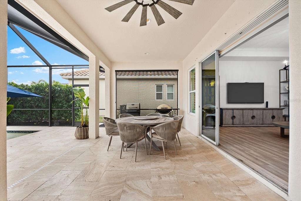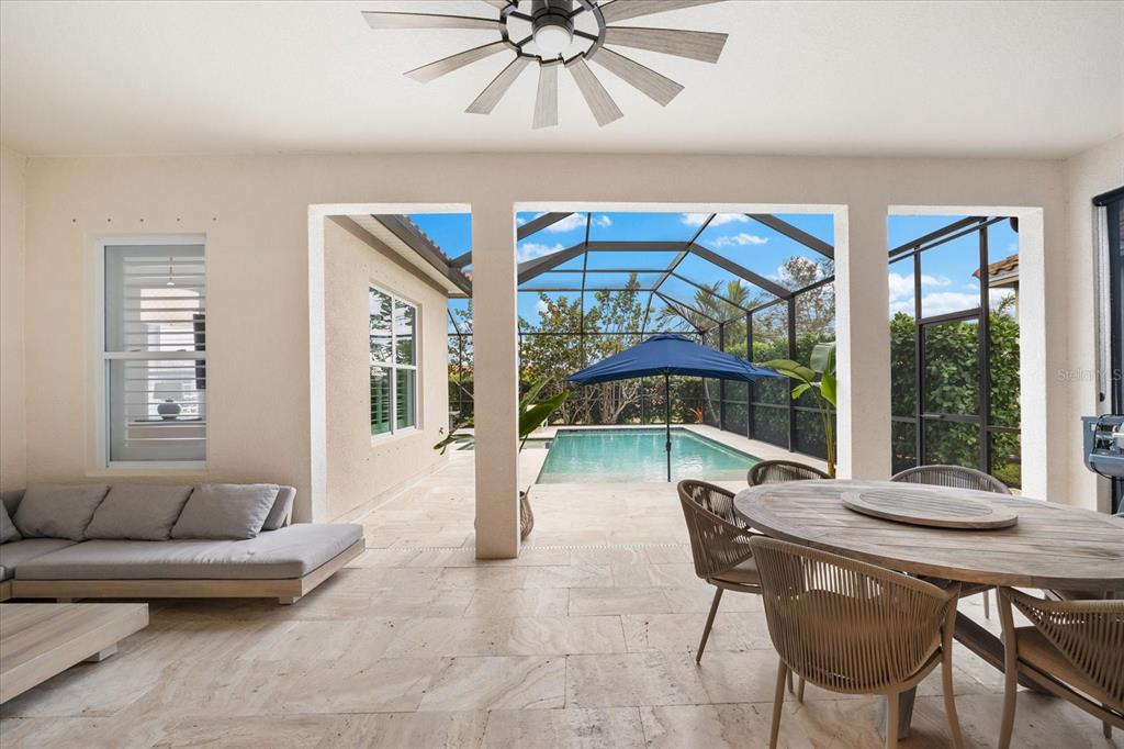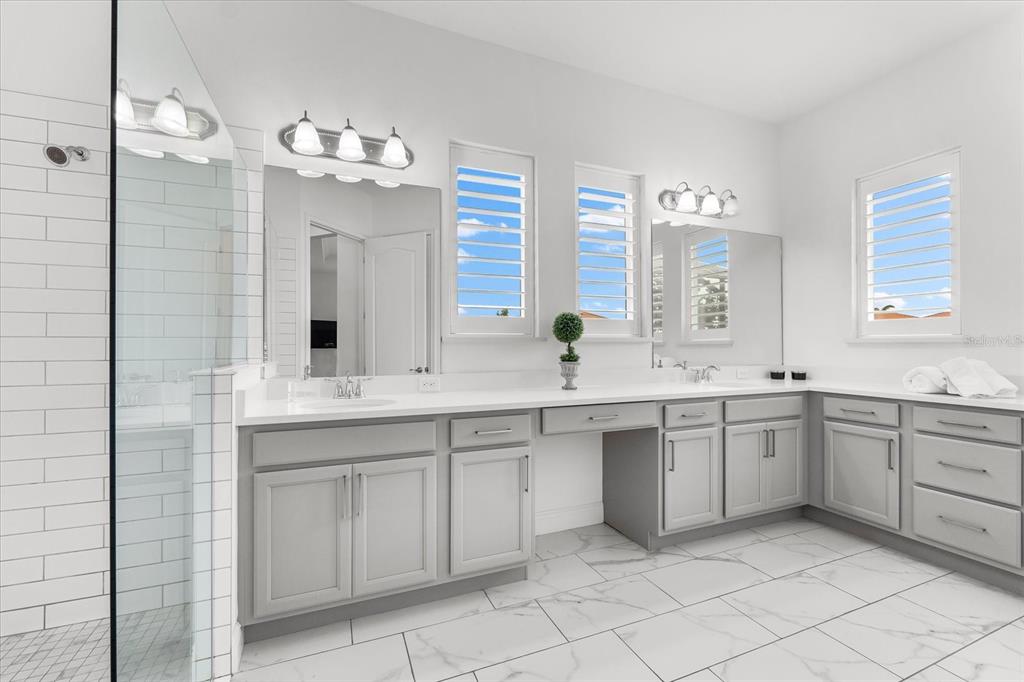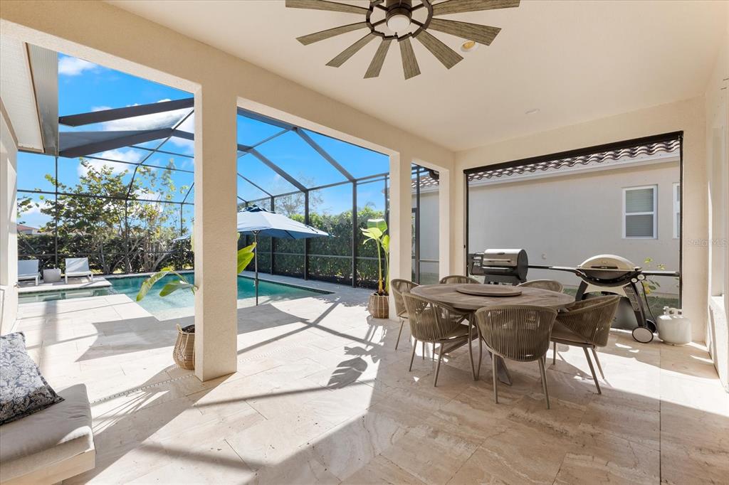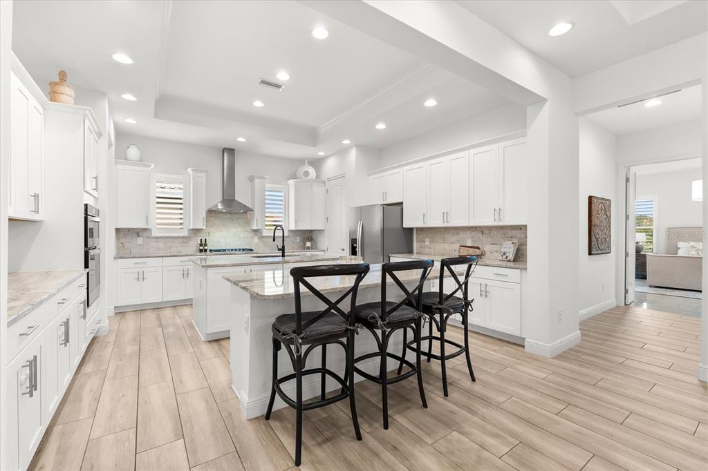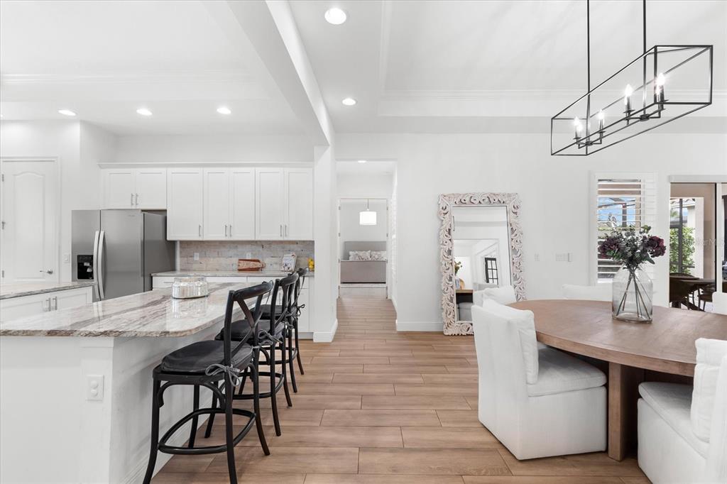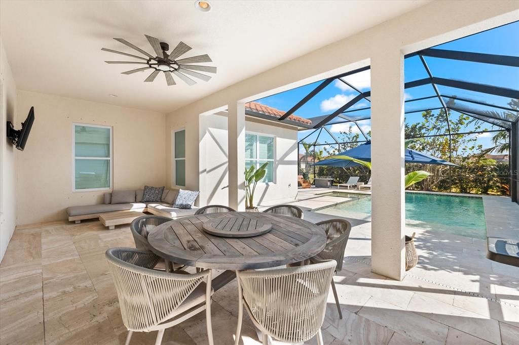 This meticulously designed 3-bedroom, 3-bathroom home offers an exceptional blend of comfort, style, and functionality, featuring a thoughtfully planned split floor plan with an office/den for added versatility. ideal for both families and entertaining, the layout strikes a perfect balance between privacy and openness. the heart of the home is the expansive kitchen, which boasts two large islands—perfect for meal preparation, casual dining, and hosting gatherings. the kitchen is outfitted with an abundance of cabinetry, a well-appointed butler’s pantry, and a walk-in pantry, providing excellent storage options. the adjacent dining and family room area forms a beautiful great room, designed for both formal and informal events. large sliding glass doors effortlessly lead out to the stunning pool area, creating a seamless indoor-outdoor living experience. the primary suite is an absolute standout. double doors open into a serene retreat, offering tranquility and privacy. the newly custom-designed walk-in closet provides an extraordinary amount of storage, while the luxurious primary bath features large vanities, a rain shower, and an abundance of natural light streaming through the windows, creating a spa-like oasis. the thoughtfully designed guest accommodations ensure comfort and privacy, with one guest bedroom featuring a private ensuite. step outside to the breathtaking, lushly landscaped backyard, where you’ll find a custom heated saltwater pool and hot tub with a large sun shelf—perfect for lounging or relaxing under the sun. the pool area features travertine throughout, adding both elegance and durability. the area is fully screened for additional comfort and also features pull-down privacy screens, enhancing the serene environment for relaxation and entertaining. the meticulous landscaping offers a peaceful setting that ensures both beauty and privacy. notable upgrades include plantation shutters throughout the home, as well as automatic blinds in key areas, adding both style and convenience to the space. for added convenience, this home includes a spacious 2-car garage, providing ample storage and parking space. as a resident of rosedale golf and country club, this home includes a social membership, granting you access to the vibrant community and its exceptional amenities. additional memberships, including golf memberships, are currently available, allowing you to fully embrace the luxurious country club lifestyle. with its outstanding features, private outdoor space, and prime location, this home offers the perfect retreat for those seeking both luxury and comfort. don’t miss the opportunity to make this spectacular property yours!10120 CARNOUSTIE, BRADENTON, FL 34211