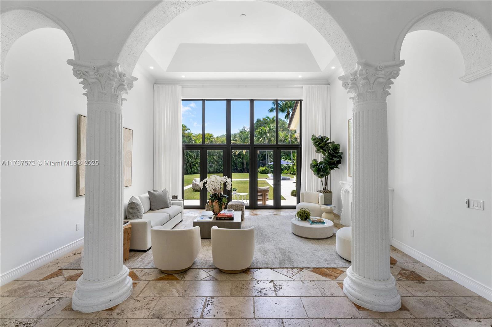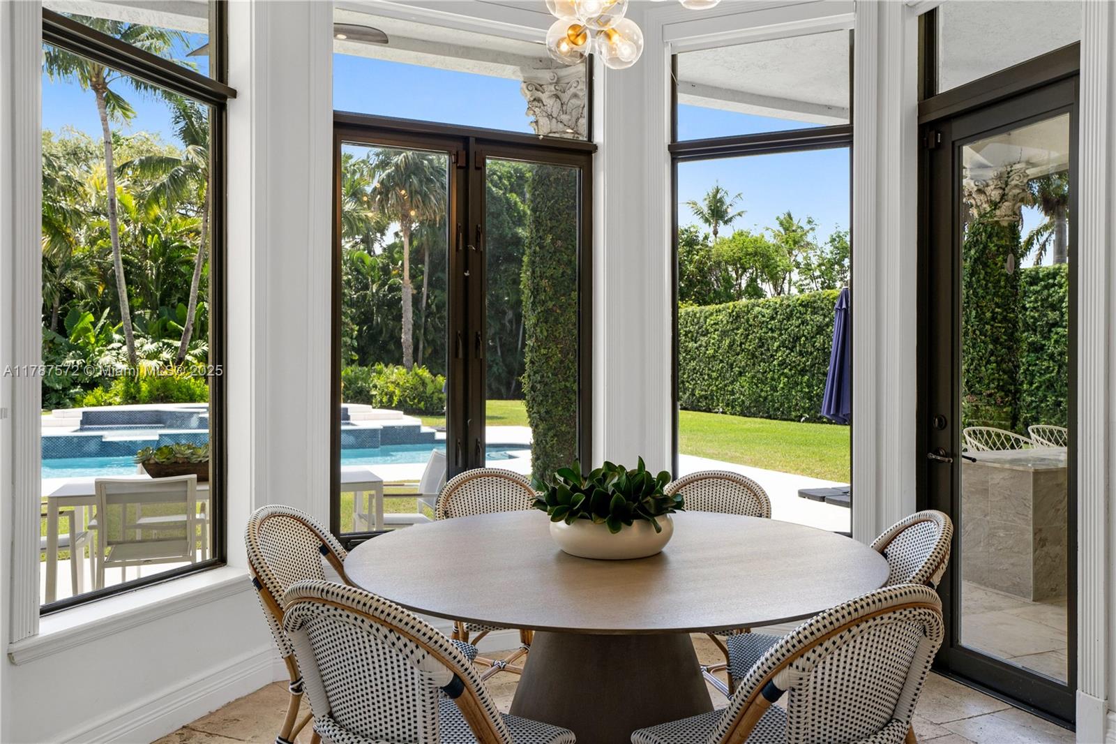 Located on a palm-lined road in sought-after n. pinecrest, this one-story gated residence offers a designed layout with soaring ceilings & well distributed living spaces. the dine-in chef’s kitchen opens seamlessly to a spacious family room and comes with a glass wine cellar the elegant primary suite includes a large sitting area. upgrades: impact windows/doors, whole-house generator, new roof (2023), new garage doors, modern lighting, custom closets, exterior cameras, updated a/cs, and new appliances. the expansive, landscaped backyard is a true south florida retreat—featuring a resort-style pool, summer kitchen, koi pond, shaded dining areas, and mature trees for ultimate privacy. located in the top-rated pinecrest elementary school district with quick access to shops, dining, and us-1.10120 SW 72ND AVE, PINECREST, FL 33156