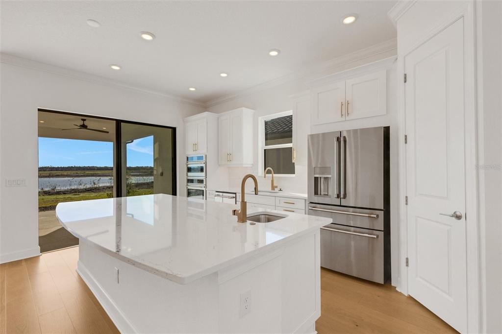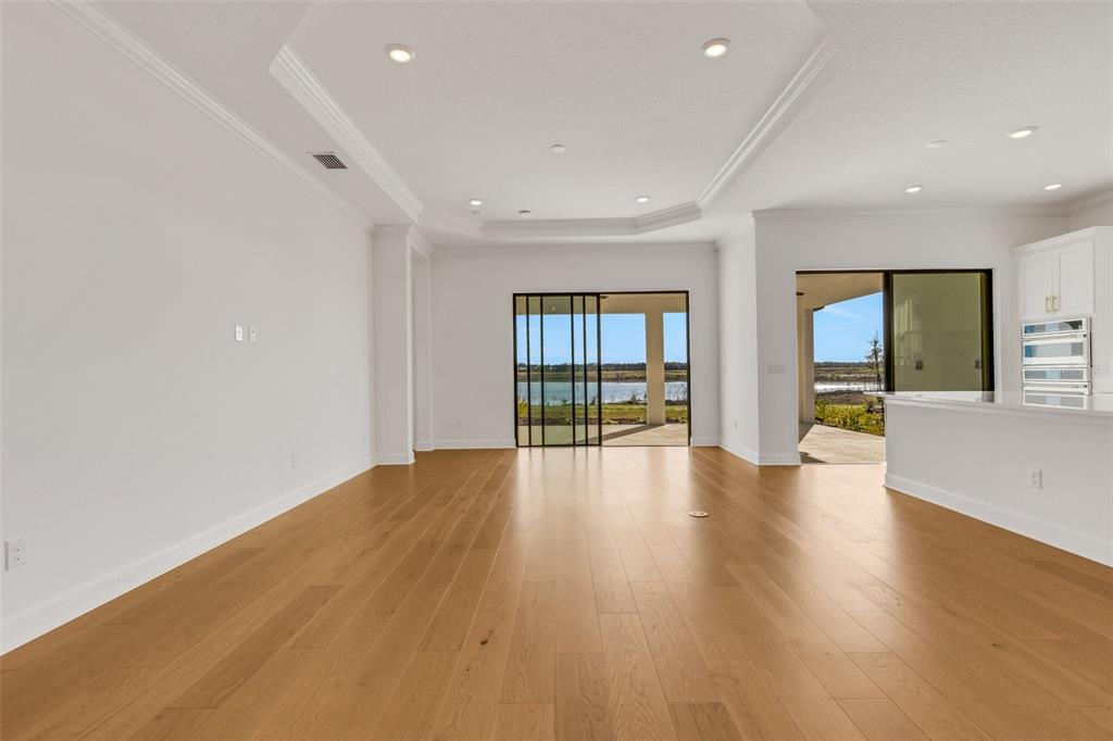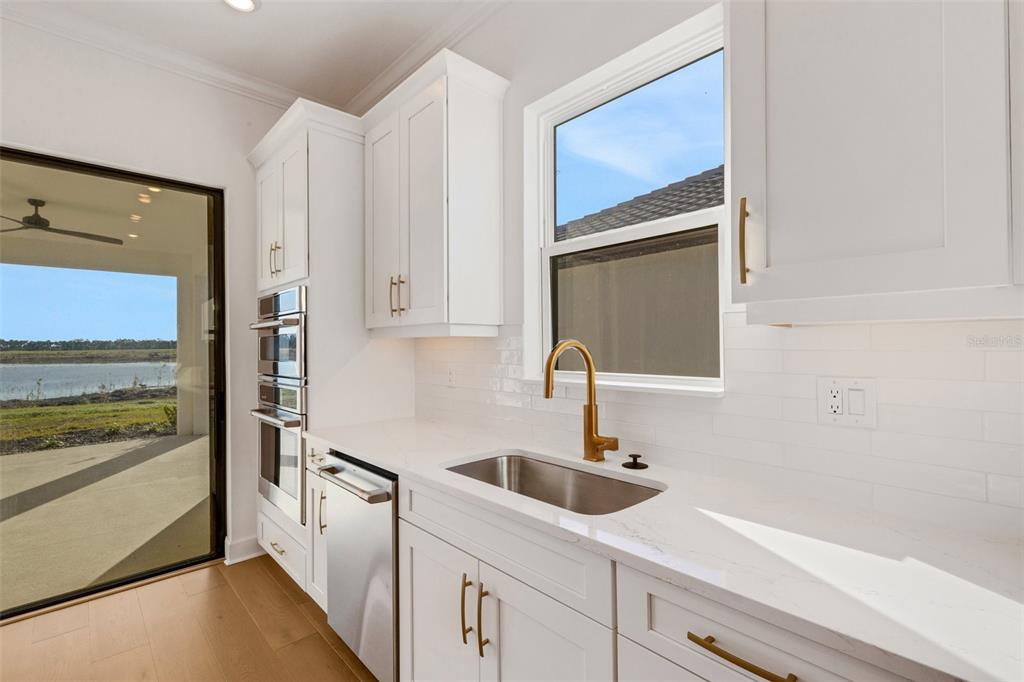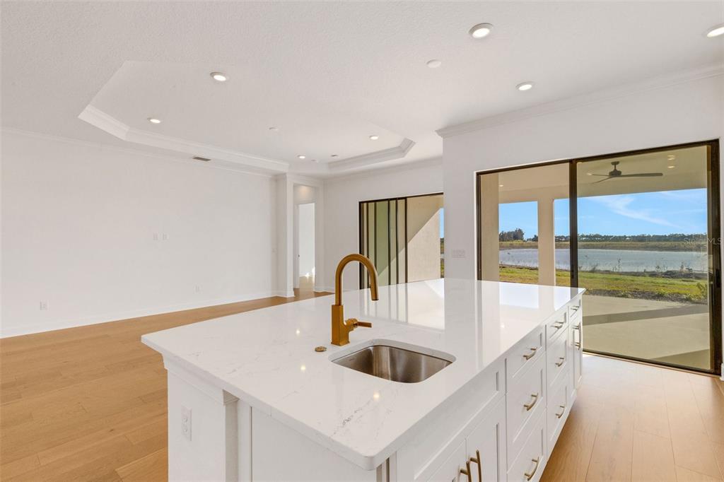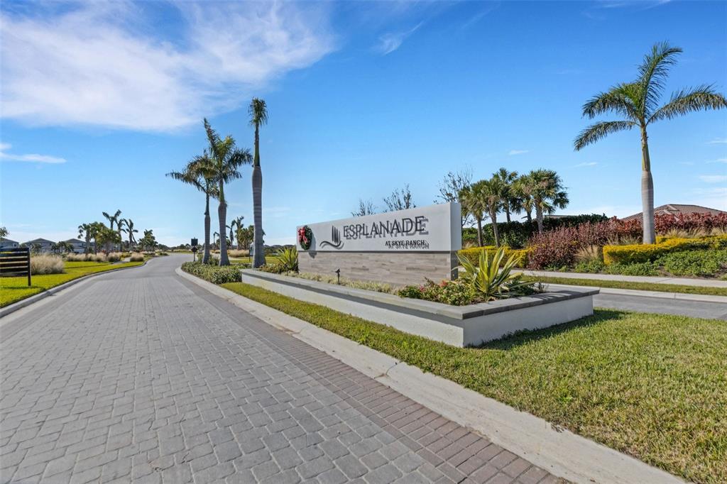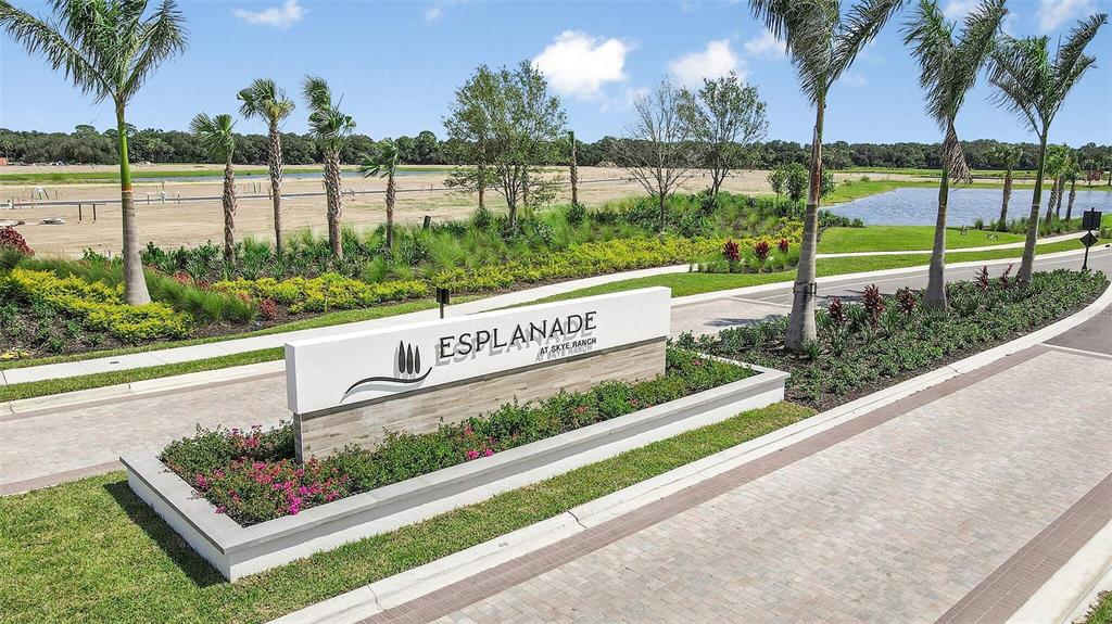 One or more photo(s) has been virtually staged. welcome to the esplanade at skye ranch, a sought-after master-plan community with 1,000+acres of lakes, 387 preserve acreage and over 25 miles of walking trails. skip builder’s delays and design center dilemmas. a beautiful, bright natural light, never lived in, 3 bedroom 3 full baths, “lazio” invites you to enjoy an elevated lifestyle. open the front door to step onto mohawk tapestry oak flooring (no carpet home), and while looking straight ahead, a panoramic never-to-be-touched preserve water view. tray ceilings and crown abound as 10 ft foyer leads past the study to the dining room and a spacious great room open floor plan. a designer kitchen with an oversized quartz island, zellige style backsplash, brushed gold pulls, moen hands free faucet, and all upgraded monogram (wi-fi) gourmet kitchen café advantage cooktop, dishwasher, oven and refrigerator make for easy entertaining. impressive primary en suite has triple bay windows and tray ceiling; spacious shower with clear glass brushed gold enclosure, a private water closet, double vanity, and extra large walk-in closet. broan ultraviolet anti-bacterial exhaust fans in all 3 baths. some additional perks include: low-e double pane windows, hurricane shutters, utility sink in laundry room; epoxy garage floors, ceiling storage - steel paneled garage doors; an extended lanai with outdoor kitchen rough in and many, many more upgrades. future plans exclusive to esplanade residents only will include a bahama bar/restaurant and an additional pool. esplanade residents will also have access to the main hub amenities that include rock climbing wall, state of the art gym, cafe, tennis courts, dog park, sports courts, sand volleyball and a fire pit. a new k-8 school within skye ranch will be opening in the fall of 2025. world class medical facilities, airport, utc shopping mall, dining, cultural events and straight shoot to siesta key beaches.10124 SILENT NIGHT, SARASOTA, FL 34241