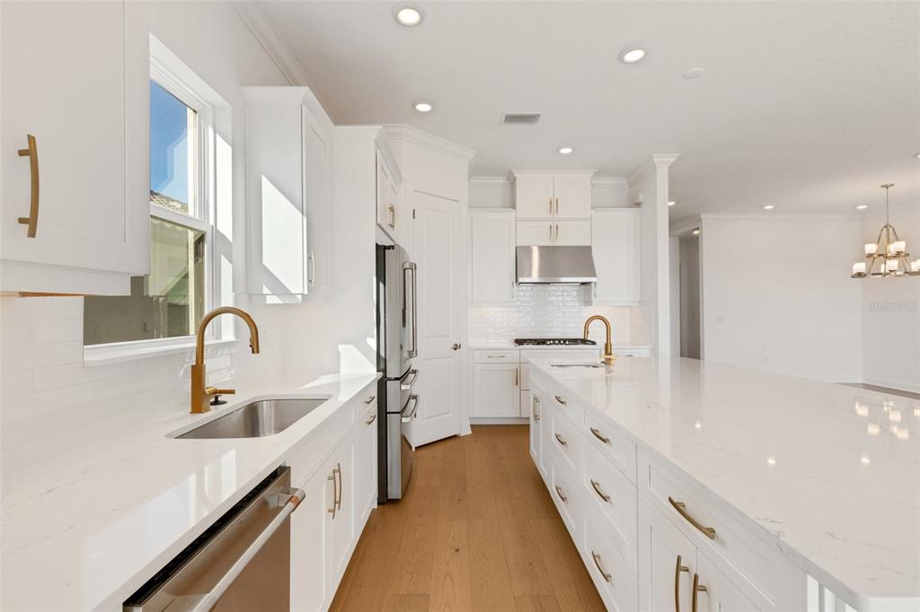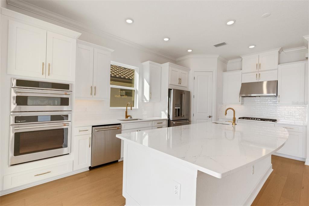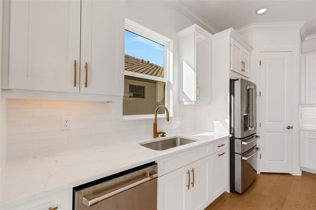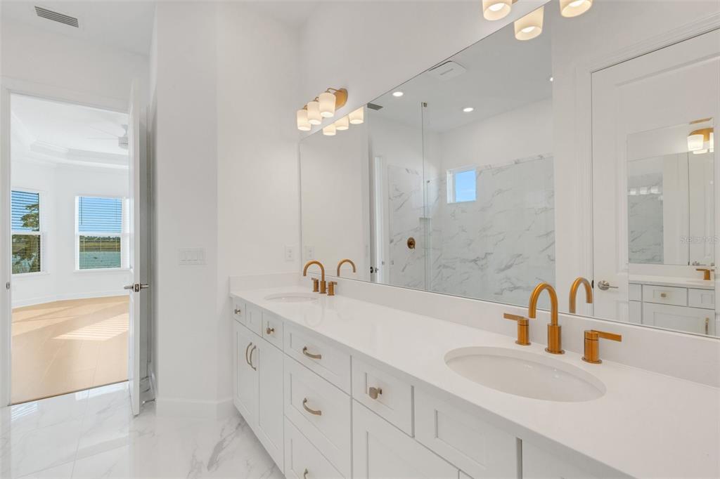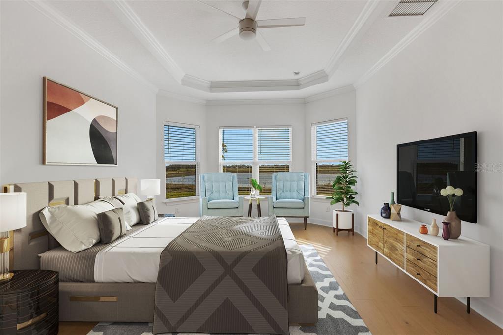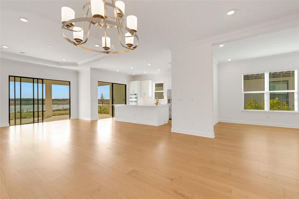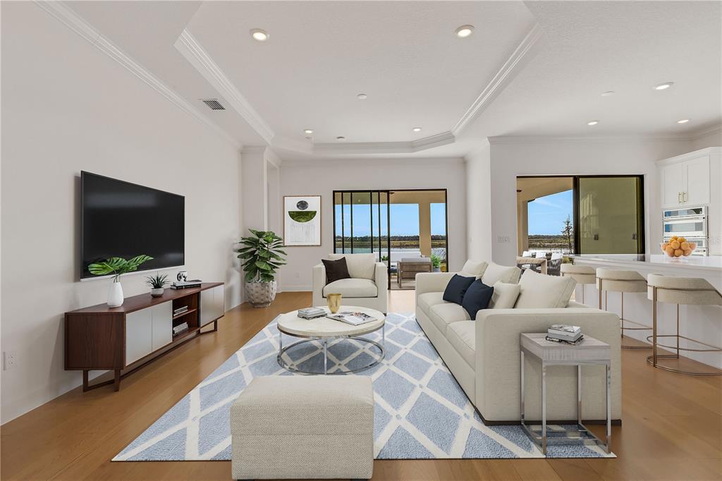 One or more photo(s) has been virtually staged. welcome to the esplanade at skye ranch, a sought-after master-plan community with 1,000+acres of lakes, 387 preserve acreage and over 25 miles of walking trails. skip builder’s delays and design center dilemmas. a beautiful, bright natural light, never lived in, 3 bedroom 3 full baths, “lazio” invites you to enjoy an elevated lifestyle. open the front door to step onto mohawk tapestry oak flooring (no carpet home), and while looking straight ahead, a panoramic never-to-be-touched preserve water view. tray ceilings and crown abound as 10 ft foyer leads past the study to the dining room and a spacious great room open floor plan. a designer kitchen with an oversized quartz island, zellige style backsplash, brushed gold pulls, moen hands free faucet, and all upgraded monogram (wi-fi) gourmet kitchen café advantage cooktop, dishwasher, oven and refrigerator make for easy entertaining. impressive primary en suite has triple bay windows and tray ceiling; spacious shower with clear glass brushed gold enclosure, a private water closet, double vanity, and extra large walk-in closet. broan ultraviolet anti-bacterial exhaust fans in all 3 baths. some additional perks include: low-e double pane windows, hurricane shutters, utility sink in laundry room; epoxy garage floors, ceiling storage - steel paneled garage doors; an extended lanai with outdoor kitchen rough in and many, many more upgrades. future plans exclusive to esplanade residents only will include a bahama bar/restaurant and an additional pool. esplanade residents will also have access to the main hub amenities that include rock climbing wall, state of the art gym, cafe, tennis courts, dog park, sports courts, sand volleyball and a fire pit. a new k-8 school within skye ranch will be opening in the fall of 2025. world class medical facilities, airport, utc shopping mall, dining, cultural events and straight shoot to siesta key beaches.10124 SILENT NIGHT, SARASOTA, FL 34241