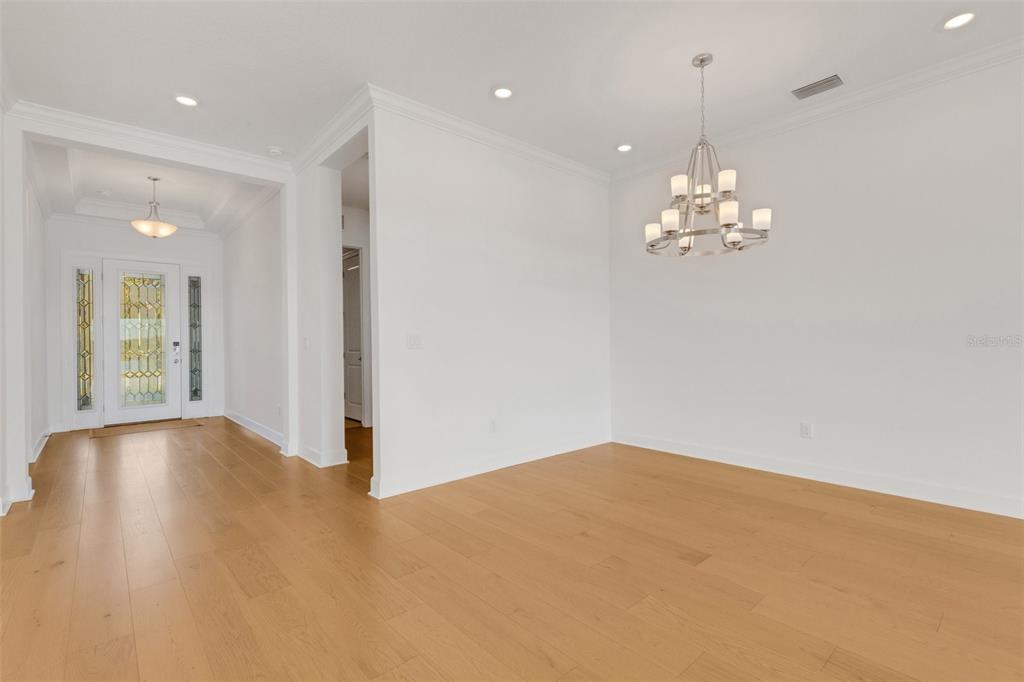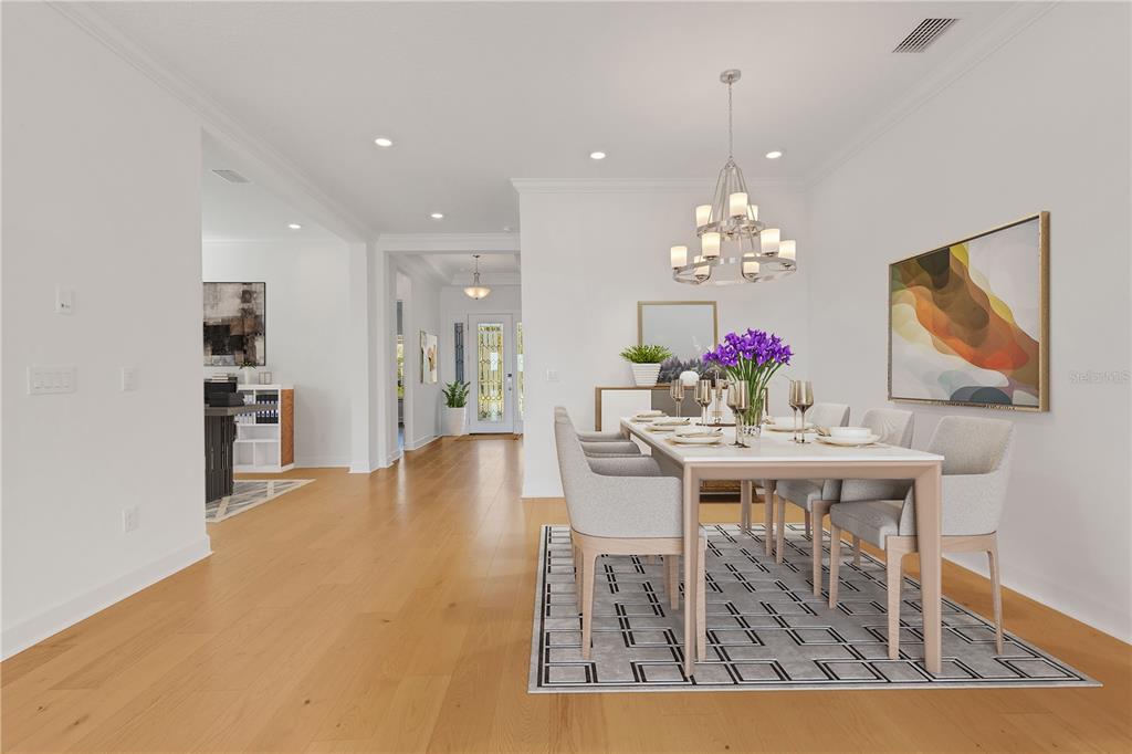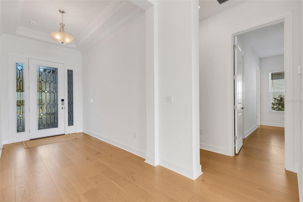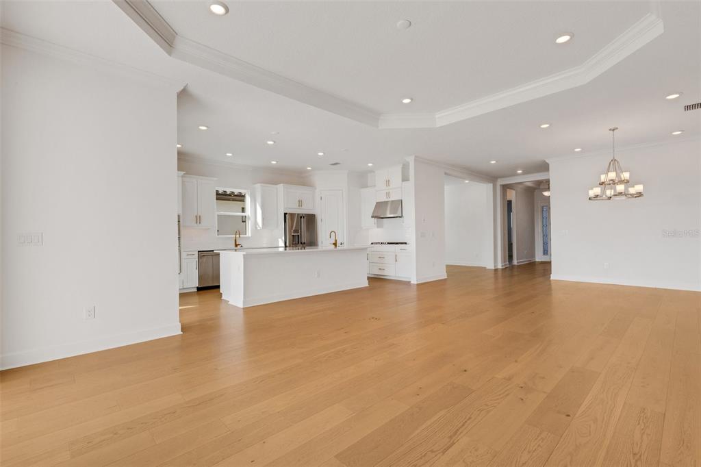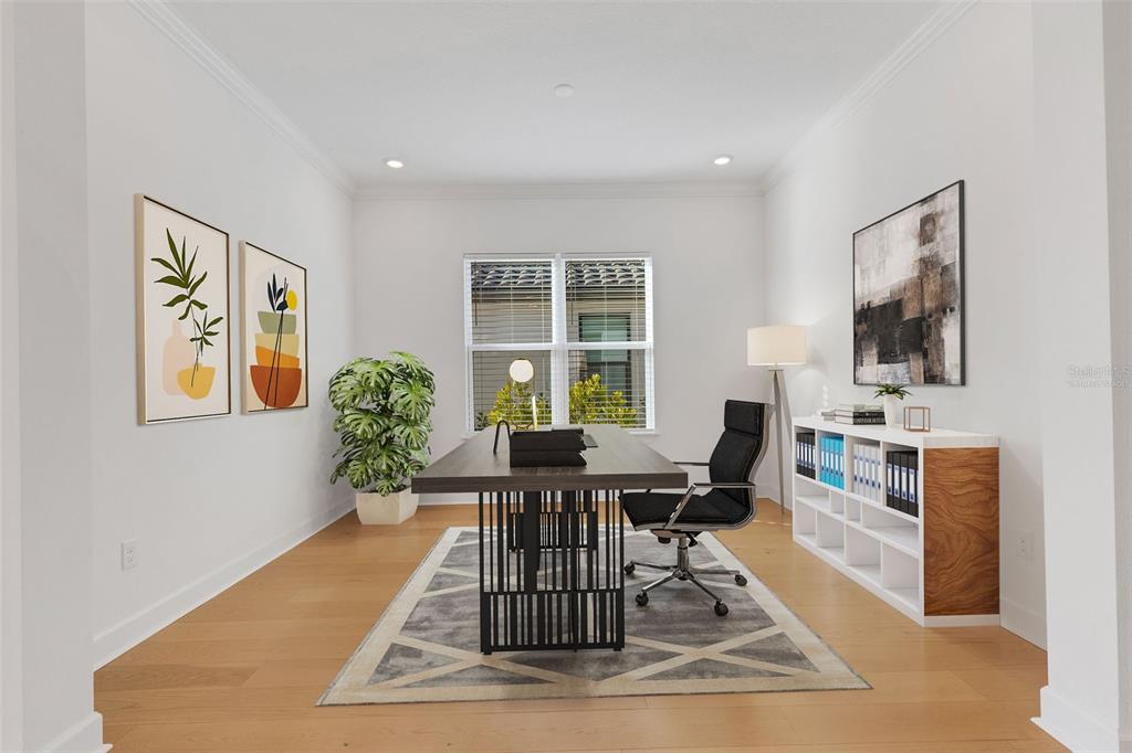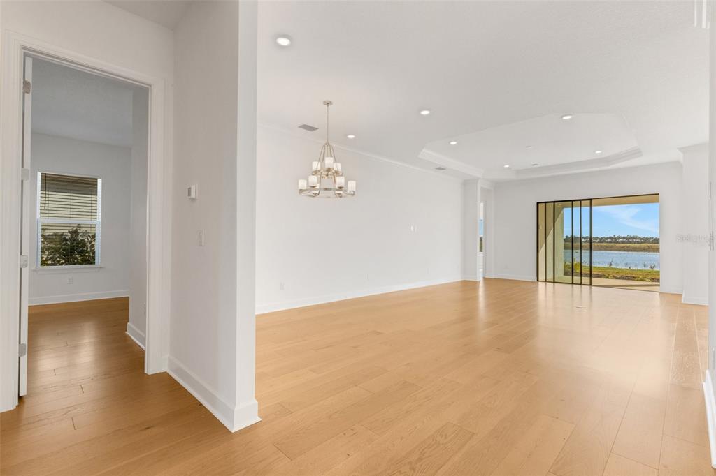 One or more photo(s) has been virtually staged. welcome to the esplanade at skye ranch, a sought-after master-plan community with 1,000+acres of lakes, 387 preserve acreage and over 25 miles of walking trails. skip builder’s delays and design center dilemmas. a beautiful, bright natural light, never lived in, 3 bedroom 3 full baths, “lazio” invites you to enjoy an elevated lifestyle. open the front door to step onto mohawk tapestry oak flooring (no carpet home), and while looking straight ahead, a panoramic never-to-be-touched preserve water view. tray ceilings and crown abound as 10 ft foyer leads past the study to the dining room and a spacious great room open floor plan. a designer kitchen with an oversized quartz island, zellige style backsplash, brushed gold pulls, moen hands free faucet, and all upgraded monogram (wi-fi) gourmet kitchen café advantage cooktop, dishwasher, oven and refrigerator make for easy entertaining. impressive primary en suite has triple bay windows and tray ceiling; spacious shower with clear glass brushed gold enclosure, a private water closet, double vanity, and extra large walk-in closet. broan ultraviolet anti-bacterial exhaust fans in all 3 baths. some additional perks include: low-e double pane windows, hurricane shutters, utility sink in laundry room; epoxy garage floors, ceiling storage - steel paneled garage doors; an extended lanai with outdoor kitchen rough in and many, many more upgrades. future plans exclusive to esplanade residents only will include a bahama bar/restaurant and an additional pool. esplanade residents will also have access to the main hub amenities that include rock climbing wall, state of the art gym, cafe, tennis courts, dog park, sports courts, sand volleyball and a fire pit. a new k-8 school within skye ranch will be opening in the fall of 2025. world class medical facilities, airport, utc shopping mall, dining, cultural events and straight shoot to siesta key beaches.10124 SILENT NIGHT, SARASOTA, FL 34241