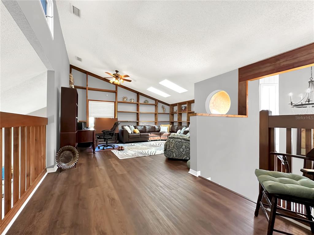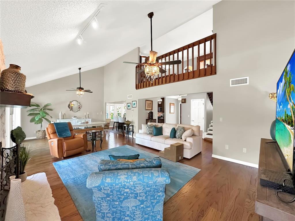 Walk-In Closet(s) Vaulted Ceiling(s)Ceiling Fan(s) High Ceilings Stone Counters Thermostat Open Floorplan Window Treatments Solid Surface Counters Solid Wood Cabinets Primary Bedroom Main Floor Skylight(s)Cathedral Ceiling(s) Dry BarExterior Features: