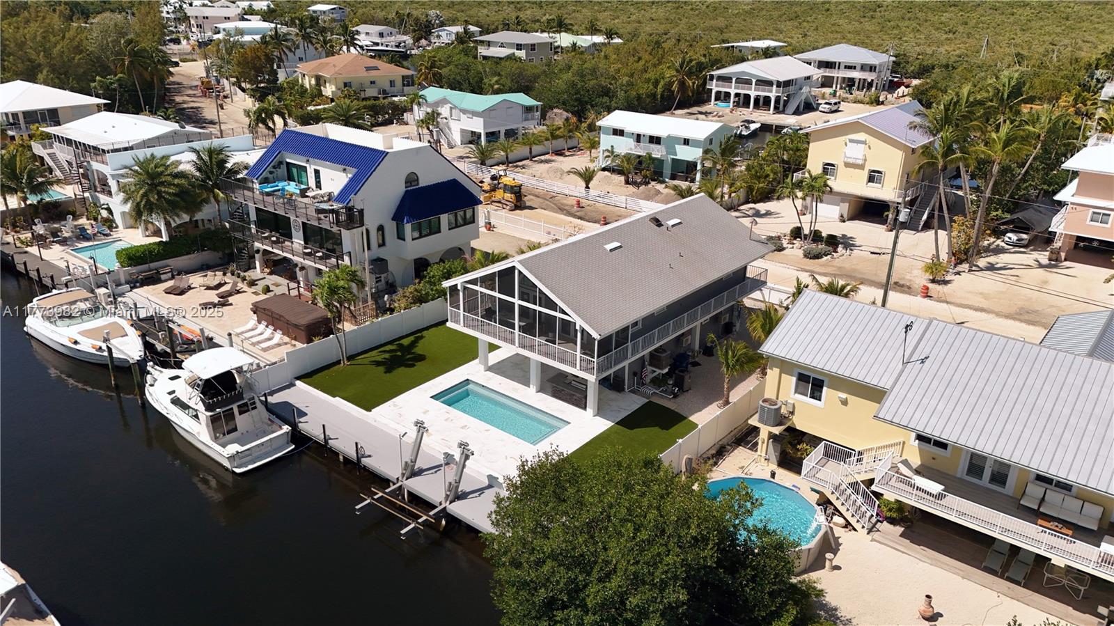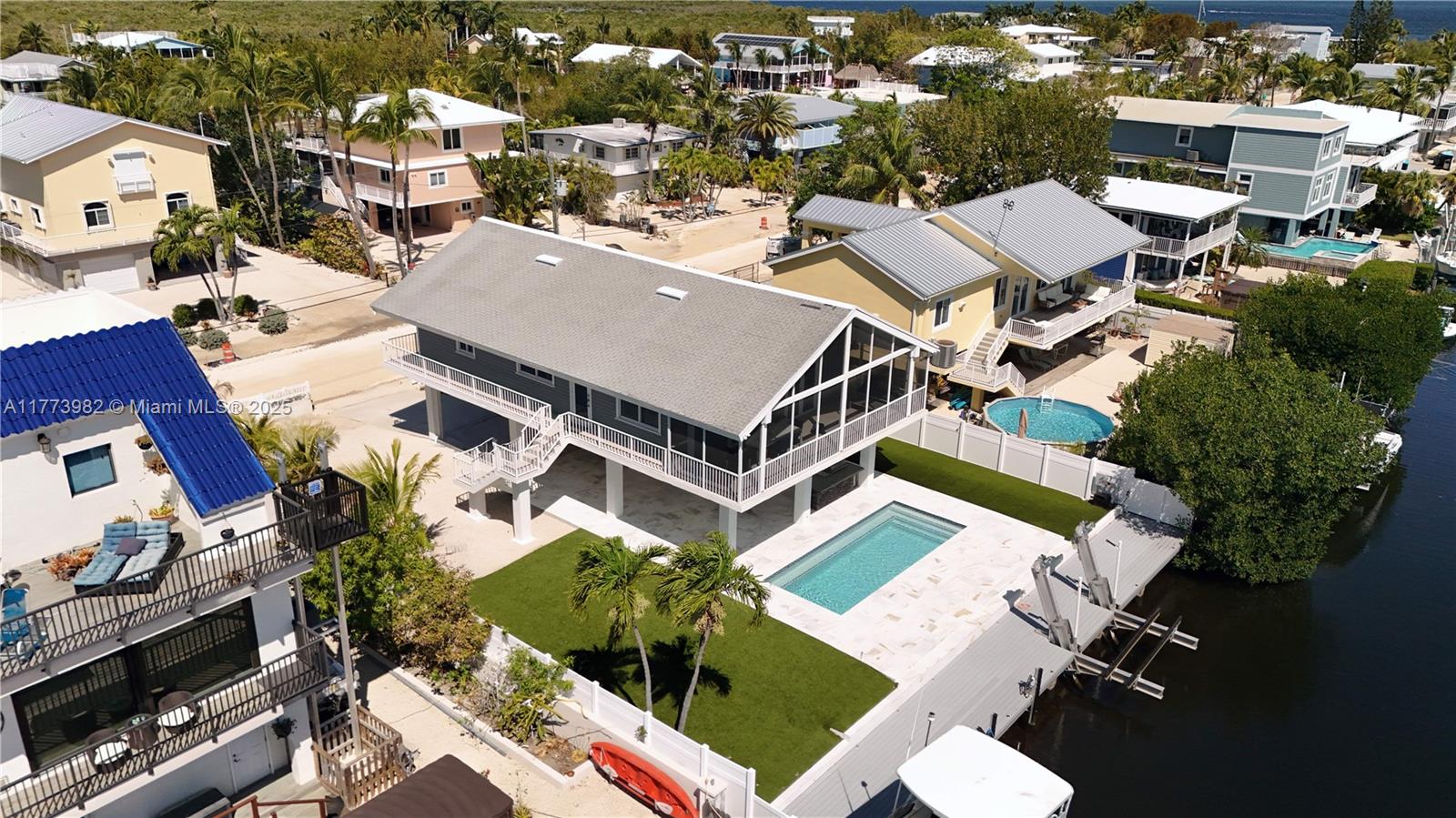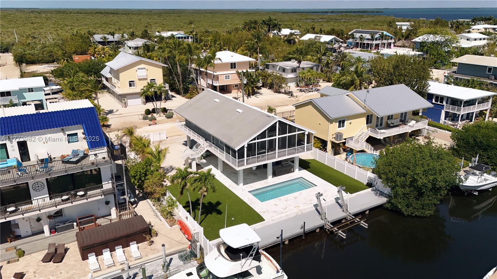 Beautifully renovated waterfront pool home in key largo offering direct bay and ocean access. this 3-bed, 3-bath residence also includes a extra 4th living area in the finished lower level, along with additional air-conditioned storage—perfect for safely storing fishing gear and equipment. enjoy 75 ft of concrete dockage with a 20k-pound boat lift. inside, the home features a bright coastal-modern design with soaring white tongue-and-groove ceilings and an open-concept layout filled with natural light. the kitchen boasts ge stainless steel appliances, a waterfall-edge quartz island, and custom cabinetry. a screened-in upper patio overlooks the pool, dock, and beautifully landscaped yard with low-maintenance artificial turf—creating an ideal space to entertain or unwind in true keys style.1020 ADAMS DR, KEY LARGO, FL 33037